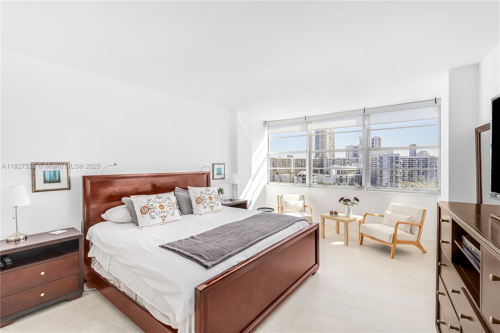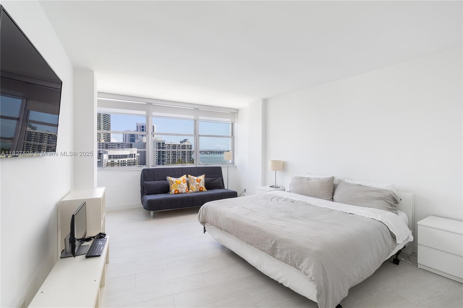 Bright and spacious furnioshed 2 bedroom apartment with unobstructed water views in Belle Plaza! Only split plan unit per floor plan. Completely renovated with a semi open kitchen. Impact windows and sliding door. Enjoy sunrises and sunsets from every room in this gorgeous apartment. Laundry room in the hallway. Easy to show.