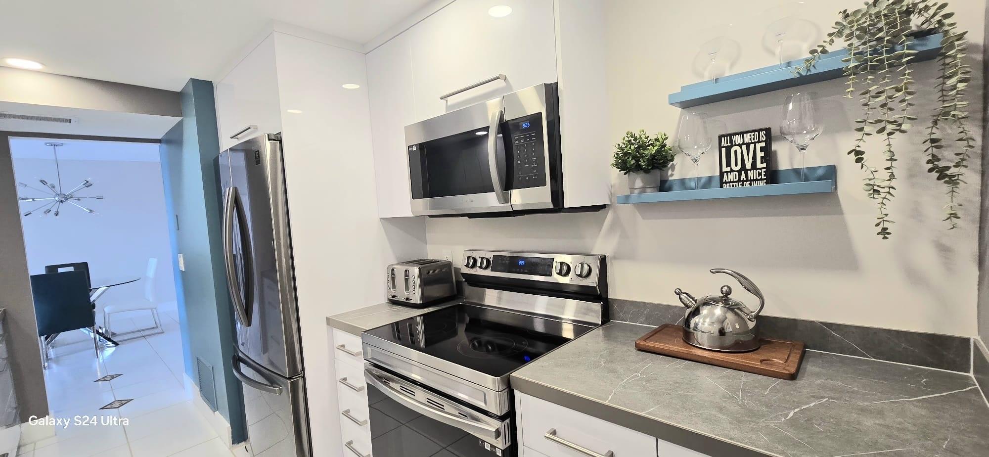Furnished Condo AVAILABLE NOW !!! *** This price is for SHORT TERM less than a year *** Renovated kitchen and bathrooms , large ONE bedroom/ 1.5 bathroom*** murphy bed in the living area. Walk to the BEACH and all the amenities that Pompano Beach has to offer .Impact Windows and Sliding Glass Doors. Walk-in closet Onsite Management Office. Gym, Recreation Room, Sauna, Grills and Heated Pool. Water Taxi block away from the building.