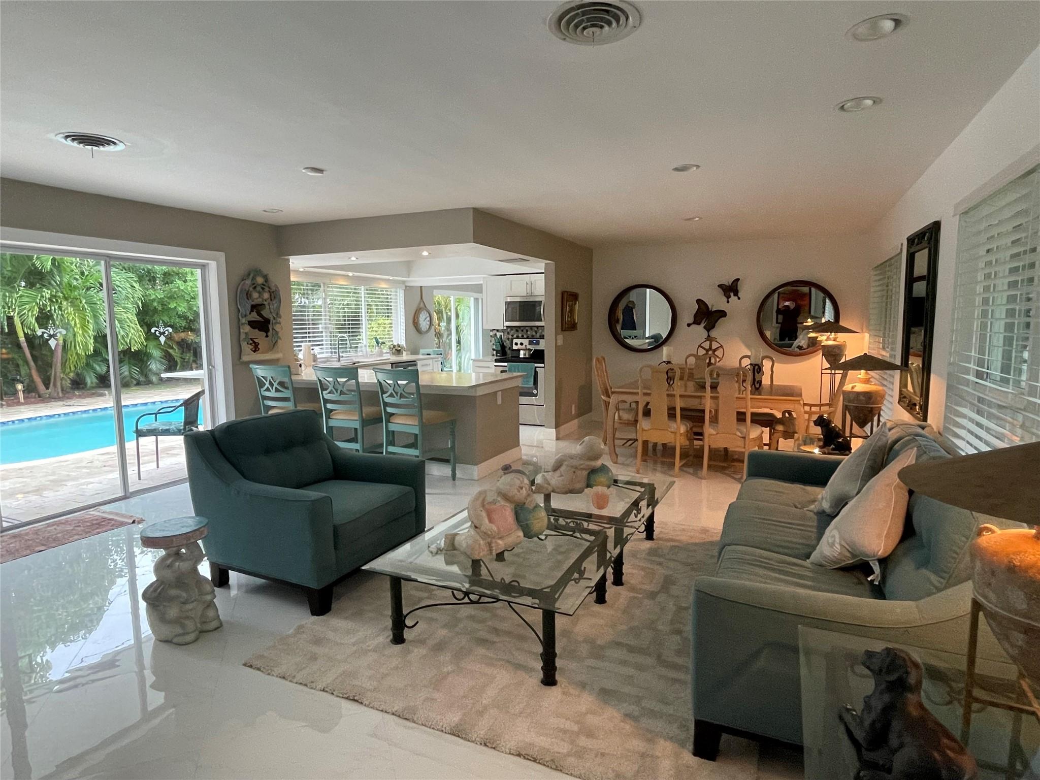 This beautifully renovated, turnkey 4-bedroom, 3-bathroom pool home is located in the highly sought-after Imperial Point neighborhood. The updated kitchen features elegant quartz countertops, updated bathrooms and tile throughout. Abundant windows allow for plenty of natural light to fill the space. You can enjoy relaxing by the pool, which includes a pass-through window from the kitchen, a spacious patio area, and a fenced-in backyard for added privacy. This home is conveniently situated near beaches, restaurants, shopping, and golf courses, as well as popular destinations like Fort Lauderdale Beach, Lauderdale-by-the-Sea, and Downtown Fort Lauderdale. The property is fully furnished and ready for you to move in. Available for annual lease or short-term minimum 2 months.