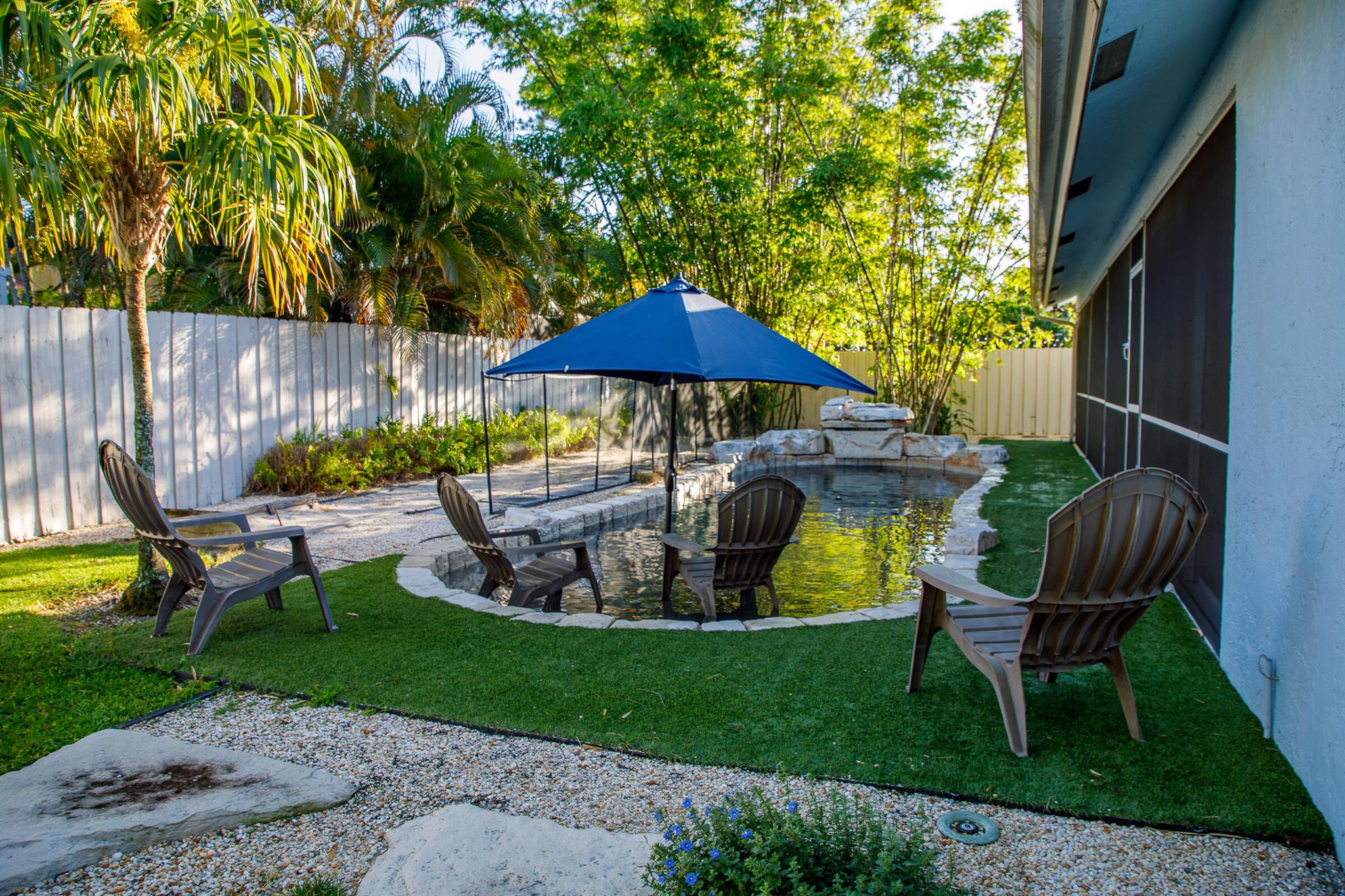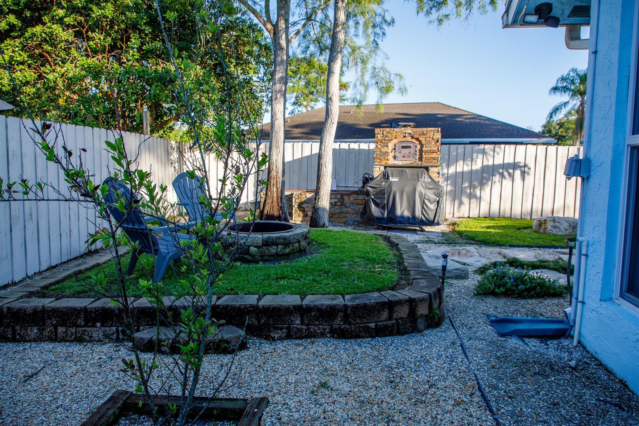 Welcome to this exquisite turnkey single-family home, fully furnished for your ultimate convenience. Nestled in a serene community, this residence boasts a private pool, screened patio, and a charming fire pit, offering a perfect blend of tranquility and luxury. Step inside this tastefully decorated 3-bedroom, 2-bathroom haven with vaulted ceilings that enhance its spacious allure. The interior features a formal living room, dining room, and a kitchen adorned with quartz countertops and stainless steel appliances. Elegant ceramic tiles and wood flooring flow seamlessly throughout the living spaces, adding a touch of sophistication.
