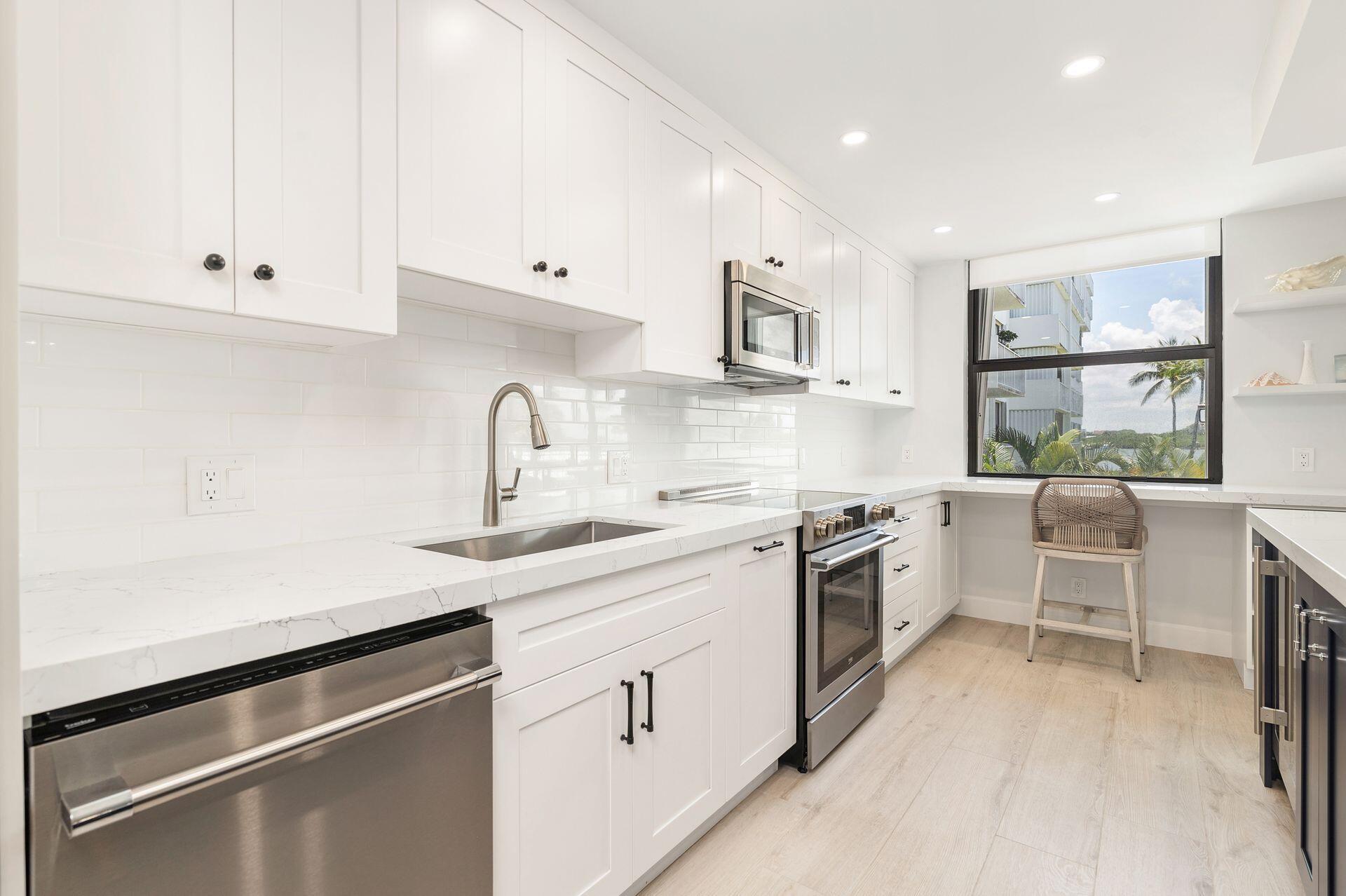 Beautifully renovated 3-bed, 2-bath on the Intracoastal Waterway. This 3-bedroom, 2-bathroom condo offers the perfect blend of coastal elegance and modern comfort. Located just minutes from the ocean, golf and dining, this light-filled home features a spacious open-concept layout with updated flooring, high-end finishes, and a sleek contemporary kitchen.