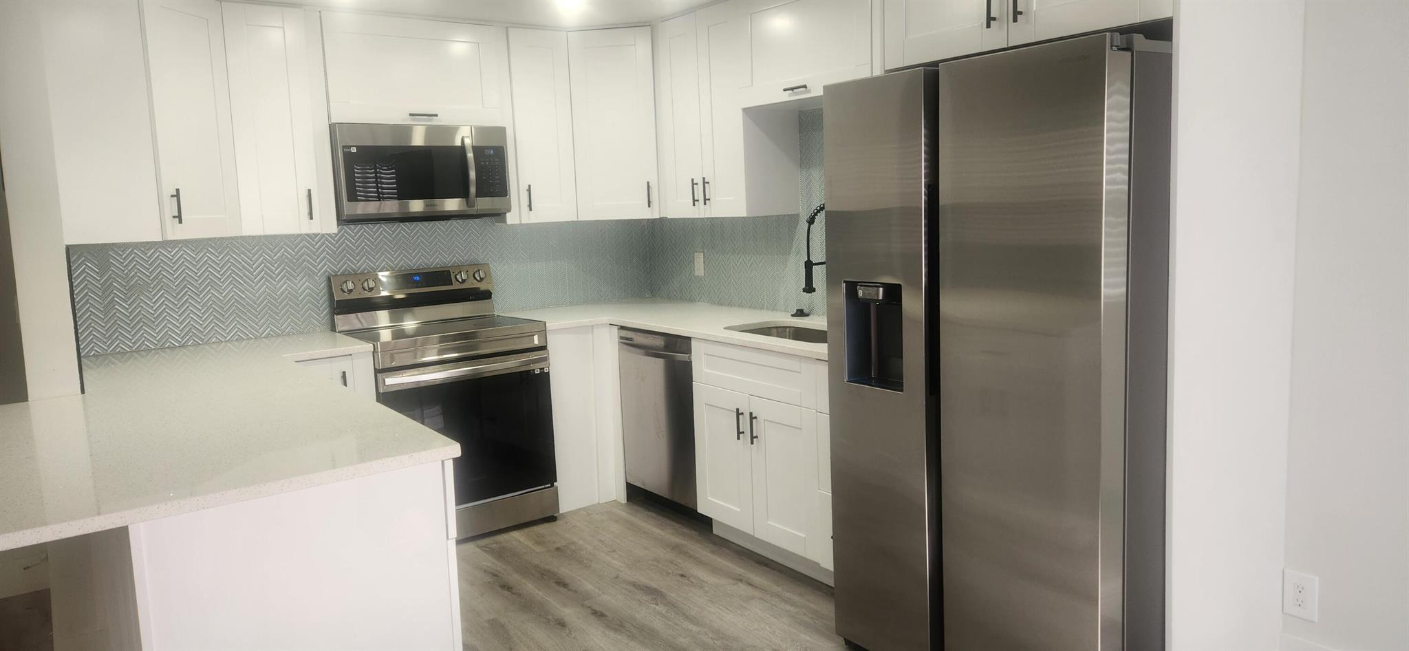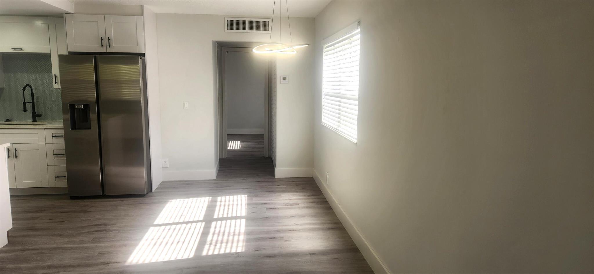 READY TO MOVE INTO...Fabulous first floor corner unit completely and beautifully renovated. Open white kitchen wilh large island. Top of the line Stainless appliances. Beautiful wood looking laminated floors throughout except for tile floors in bathrooms. Exquisite bathrooms with tile and marble and walk in shower. Full size high end washer and dryer. Relaxing screened in patio/porch. This is a fabulous social community with huge clubhouse, cafe, fitness center, indoor and outdoor pools. Pickle ball and Tennis Courts. A professional theater with terrific and low cost shows. Lots to do and lots of clubs. Minimum Credit Score is 650 as per Association.
