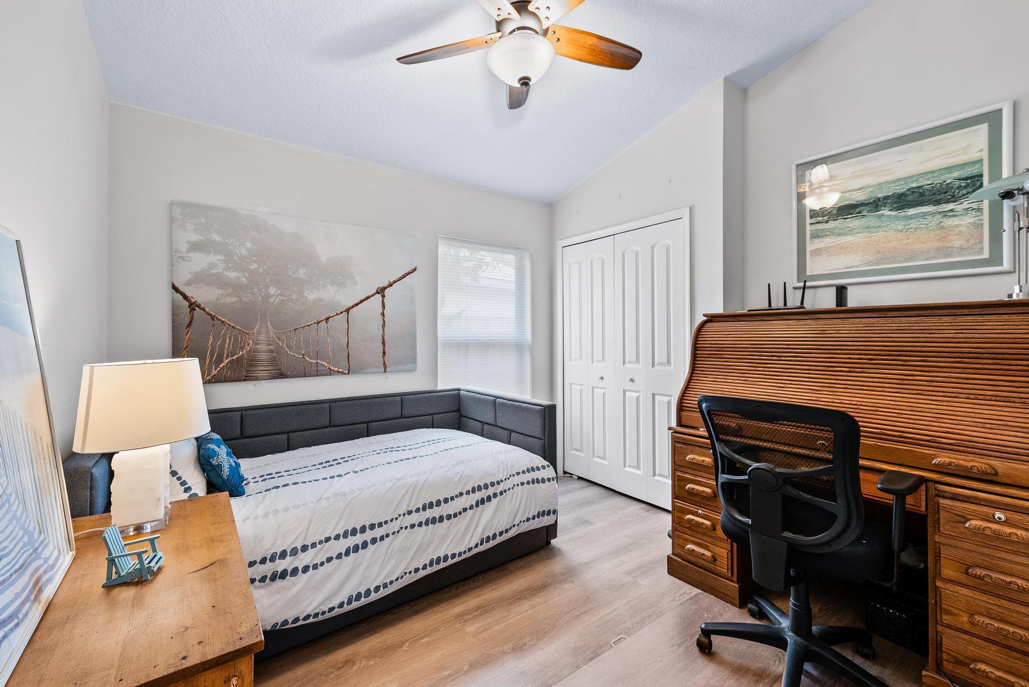 Immaculate 3-bedroom, 2-bath annual rental located in the highly sought-after gated community of Stonebriar. This beautifully maintained home features vaulted ceilings, skylights, impact glass, newer roof (22) and a desirable split floor plan. Enjoy newer Bosch and Whirlpool appliances, a Sub-Zero refrigerator, double ovens, new washer and dryer, and an additional fridge in the garage. Coastal-style wood, tile, and laminate flooring flow throughout, complemented by fresh paint. The spacious primary suite includes a king bed, Jacuzzi tub, and all bedrooms are outfitted with new mattresses. A tankless water heater adds efficiency, while 9-foot retractable impact sliders open to a serene, fully fenced backyard and private patio--perfect for indoor-outdoor living.
