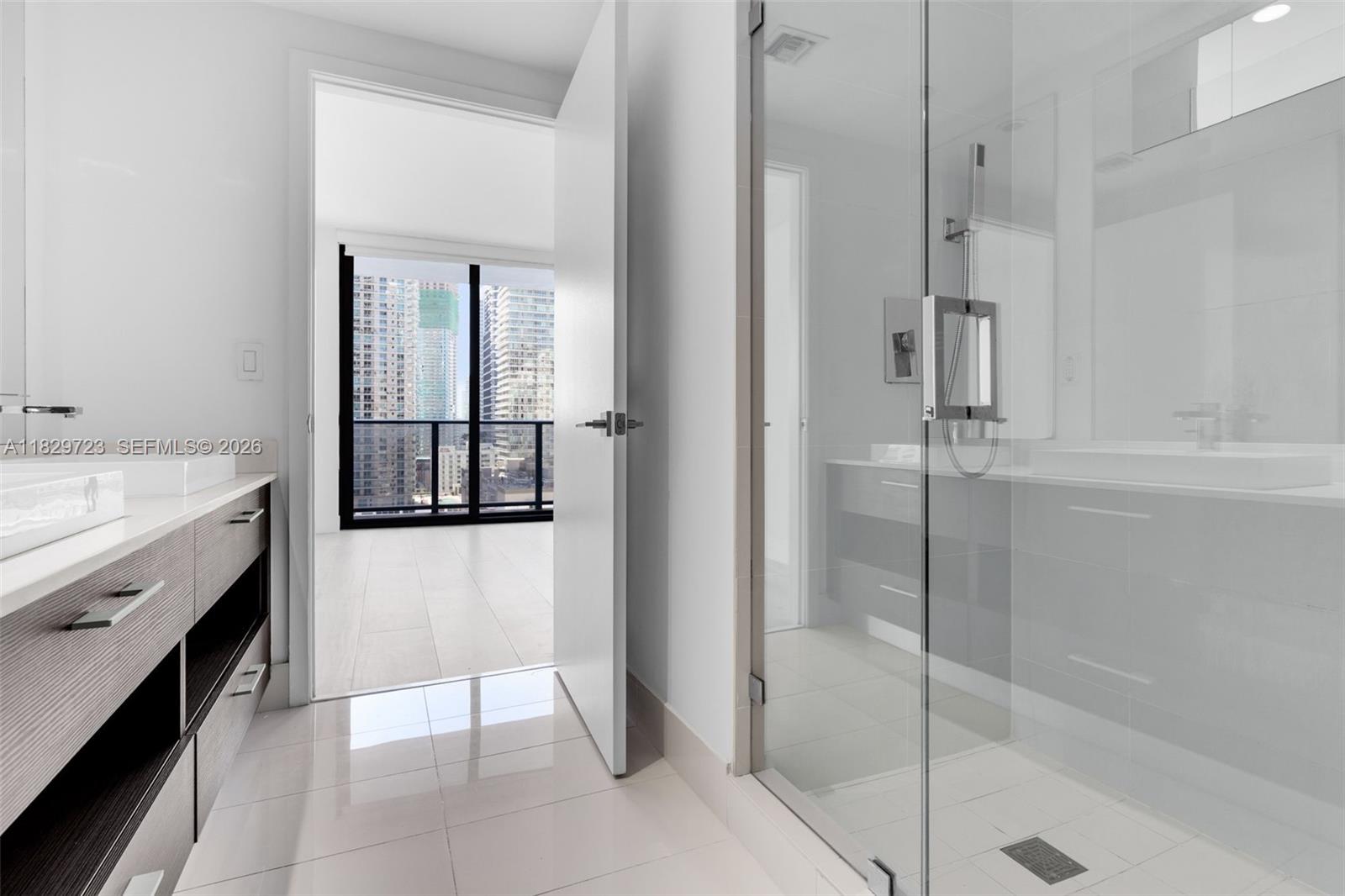 Spacious 2BD+Den in the heart of Brickell. Unfurnished unit with stunning skyline and bay views from wraparound balcony and floor-to-ceiling windows. Newly installed white wood-look tile flooring and freshly painted. Features European kitchen with stone countertops, stainless steel appliances, blackout bedroom shades, washer/dryer, and great closet space. Luxury building with resort-style amenities including rooftop pools, spa, theater and more.