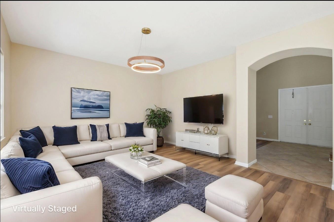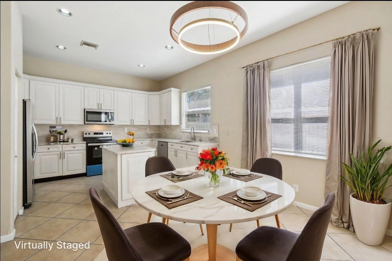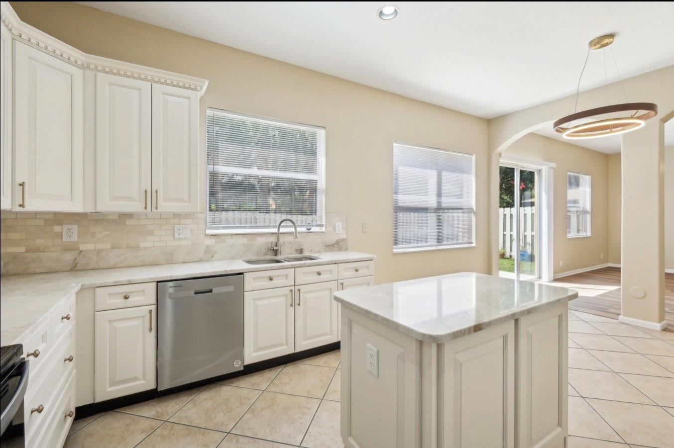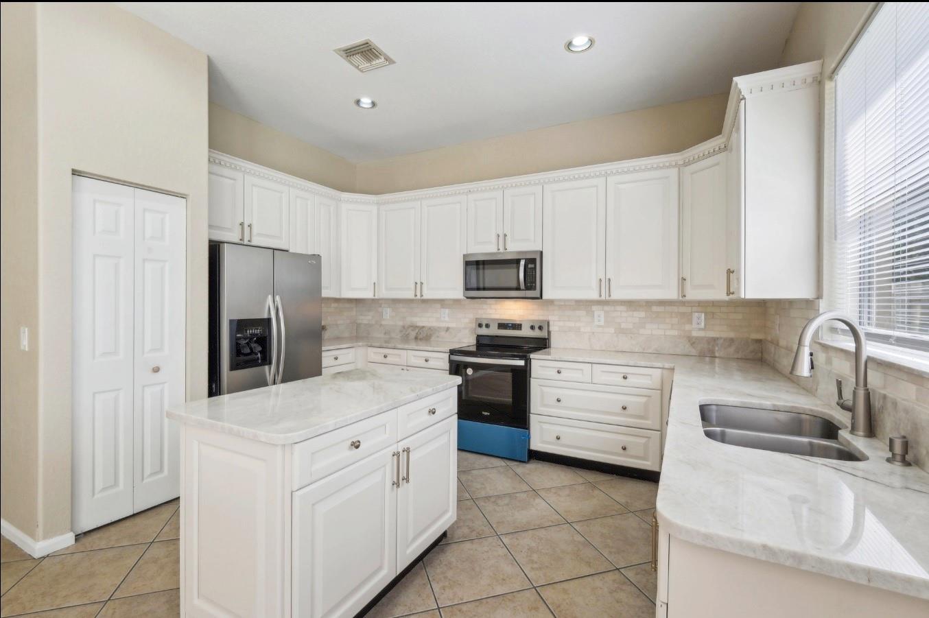 Beautifully renovated 5-bedrm, 3-bath home located in the gated community of Lakes of Laguna, WPB. It features a 3car garage. This move-in ready property offers a gourmet kitchen for your dining with quartz countertops, ss appliances, & modern finishes. All bathrooms have been tastefully updated. This model floor plan includes a convenient first-floor guest suite. Backyard has plenty of room for a pool and multiple seating areas. Add trees to yard which would makes a perfect setting for outdoor dining and cherished moments. All residents have access to community amenities: pools, tennis & basketball courts, and scenic walking paths. Conveniently located to downtown, shopping, dining, the beach and the airport. This home blends style, space, and location. Schedule your showing today!