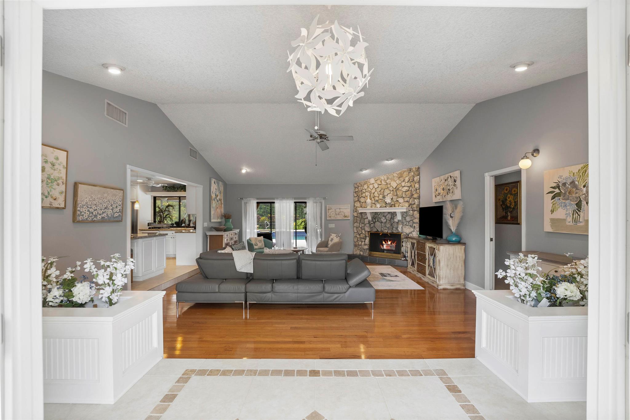 Gorgeous well maintained and professionally decorated 3/2 pool home offers an open floor plan, spacious gourmet kitchen with granite counter tops and custom island, cozy family room with oak floors and a working wood burning fireplace. Huge screened-in patio with multilevel pool and hot tub. Spacious driveway, no HOA! Located in desirable Pinewood Grove of Wellington, near world Equestrian facility, shopping and dining. Rented furnished. Pool and landscape maintenance included in rent.