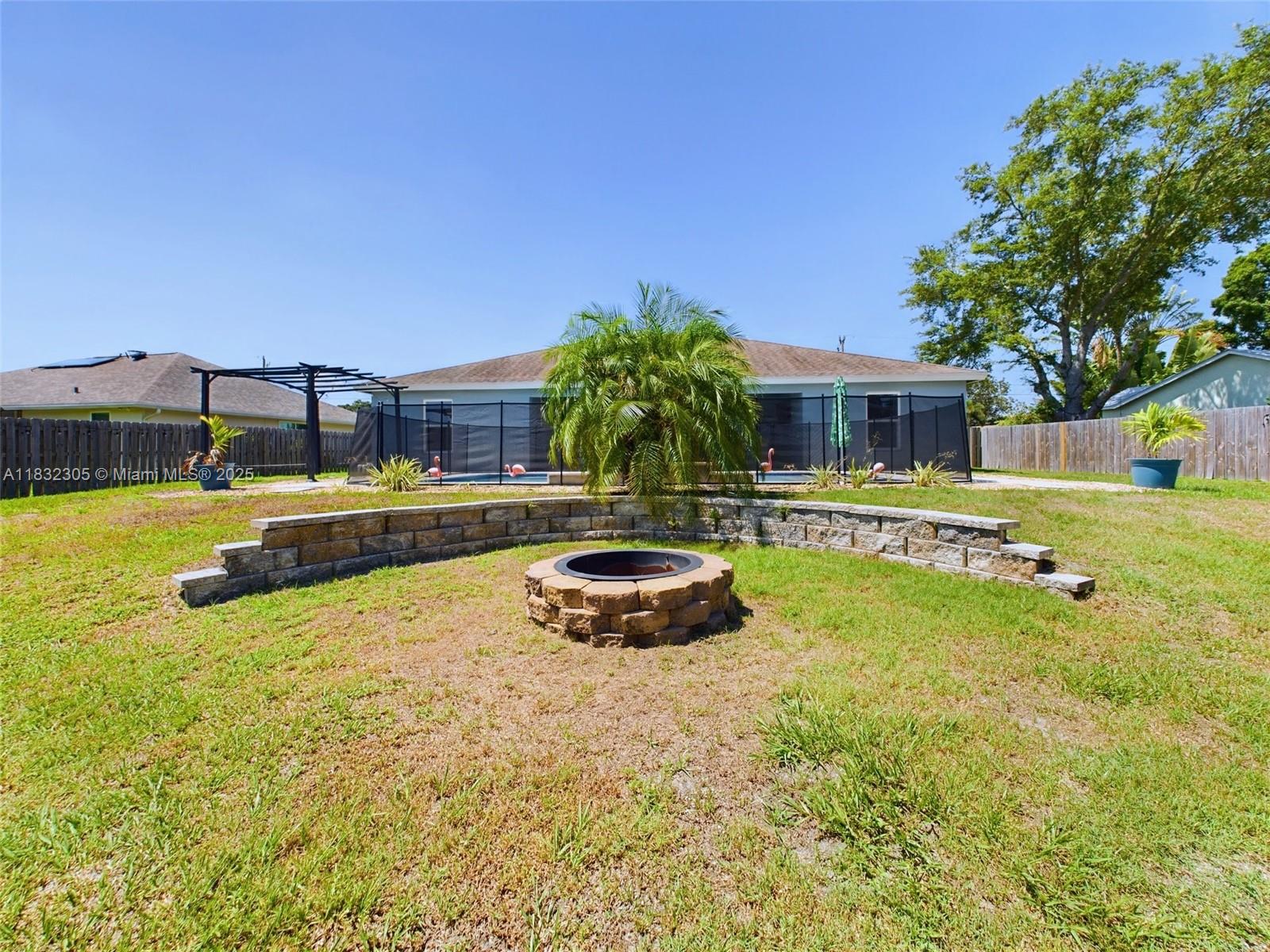 Welcome to your dream home in the heart of Port St. Lucie! This fully renovated, spacious single-family house is filled with natural light and thoughtfully designed for both comfort and entertainment. Step out back into your private oasis: a massive yard featuring an oversized saltwater pool with a new pump, an outdoor bar with poly coating, built-in garbage, and beverage fridge, plus a cozy fire pit, pergola, and charming string lights to set the mood. The oversized, fully fenced yard also includes a shed, offering plenty of space for gatherings with family and friends. Modern kitchen with granite countertops, soft-close cabinetry, stainless steel appliances, and recessed lighting. Situated in an unbeatable location, this home is ready for you to enjoy both luxury and relaxation!