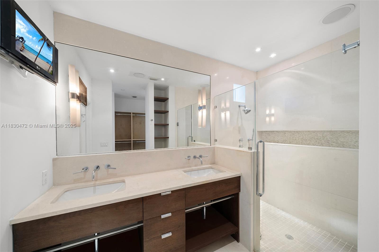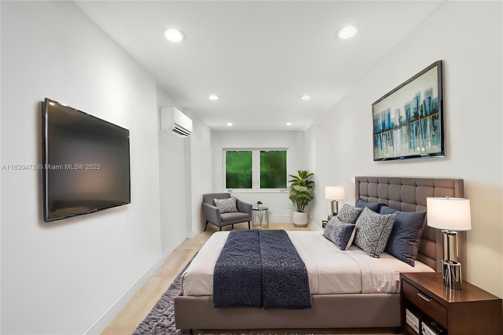 Timeless elegance in the heart of Miami Beach’s most prestigious enclave. This renovated Mid-Century Modern masterpiece is hidden behind lush hedges and a gated entry, offering total privacy and tropical serenity. This 4BD/4BA residence includes a separate office/library with its own en-suite bath — ideal for working or relaxing in style. Sophisticated finishes include limestone and walnut hardwood floors, a sleek chef’s kitchen with Miele and Sub-Zero appliances, impact doors and windows, a climate-controlled garage and secluded heated pool elevate the everyday. This rare North Bay Road home is the ultimate blend of design, comfort, and location — a true private oasis in one of Miami’s most sought-after neighborhoods.