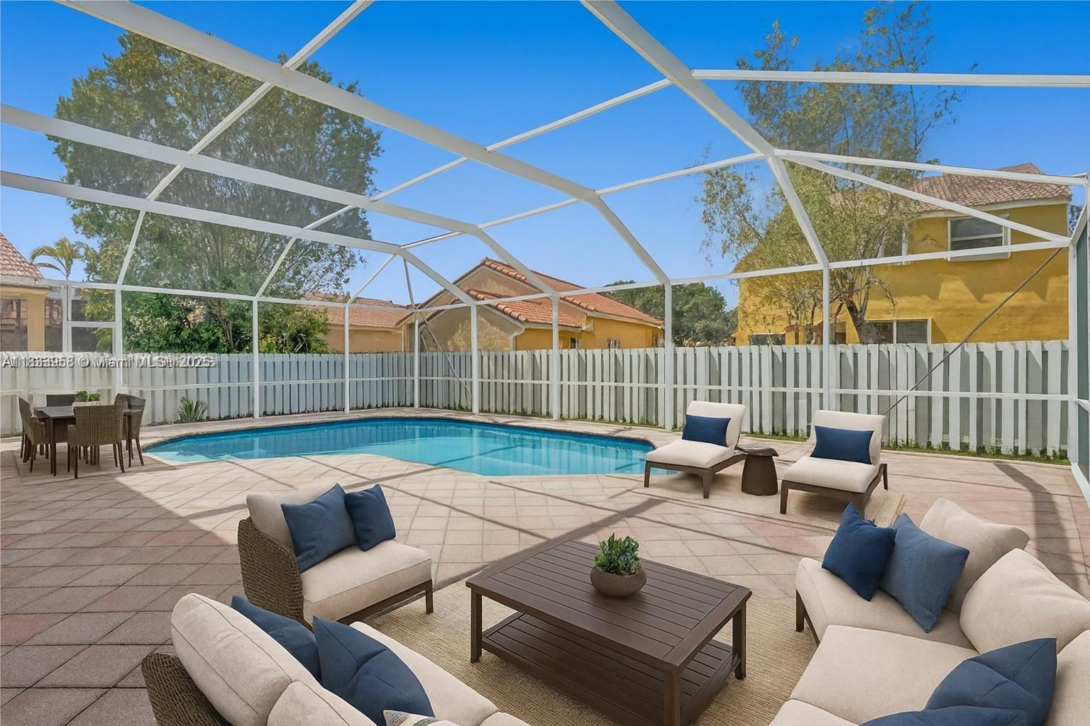 Welcome to The Falls in the heart of Weston! Located on a quiet cul-de-sac, this beautifully updated home features a heated, screened-in pool with a paver patio and an extended, covered lanai—perfect for outdoor living. Inside, you'll find California closets, crown molding, French doors, and a primary suite on the first floor. Tile flooring is featured throughout the main level, and wood flooring is used upstairs. Enjoy peace of mind with accordion hurricane shutters. Recently painted inside and out in neutral tones with new landscaping and a fully renovated kitchen with brand-new appliances. Just a short walk to the elementary school and close to bus stops for middle and high school.