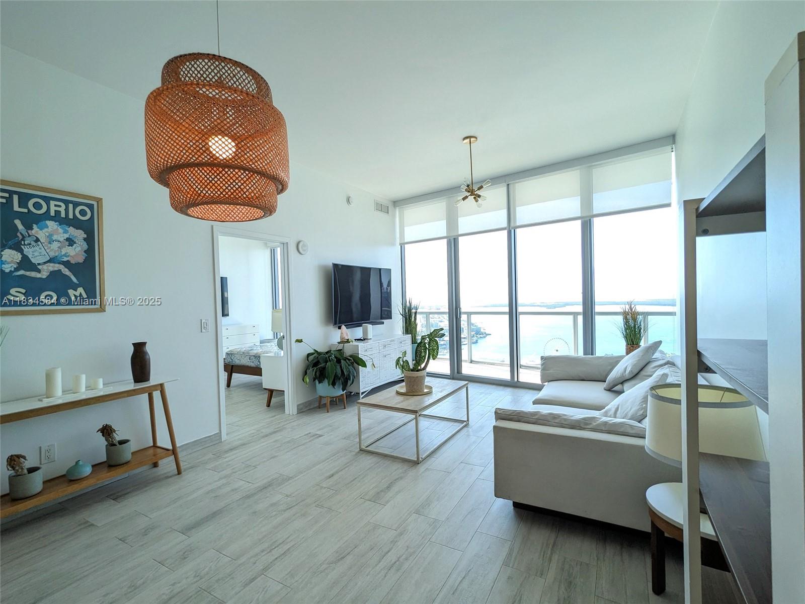 Love the view! This beautifully furnished one-bedroom, one-and-a-half-bath condo on the 47th floor of Marinablue offers stunning bay and city views from its open balcony. Featuring tiled floors throughout and an updated kitchen, the unit combines style and comfort in one of Miami's most desirable locations. Situated on Biscayne Boulevard, it’s just a short walk to the performing arts district, Bayside Park, museums, shopping, and dining. The building boasts resort-style amenities including two pools, a hot tub, a fully equipped fitness center, 24-hour concierge and security, valet parking, a club room, business center, barbecue grills, and even a sand volleyball court. This is luxury high-rise living at its finest.