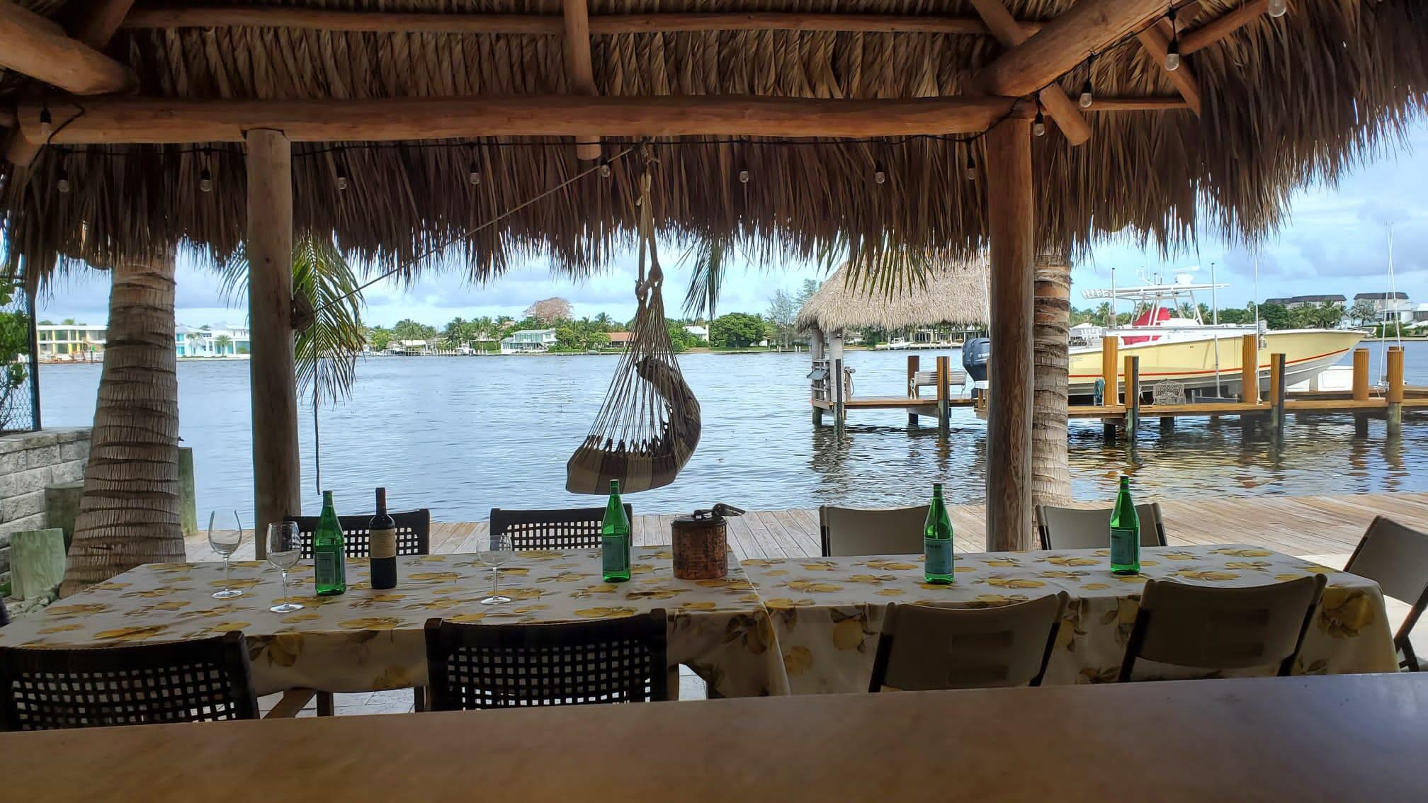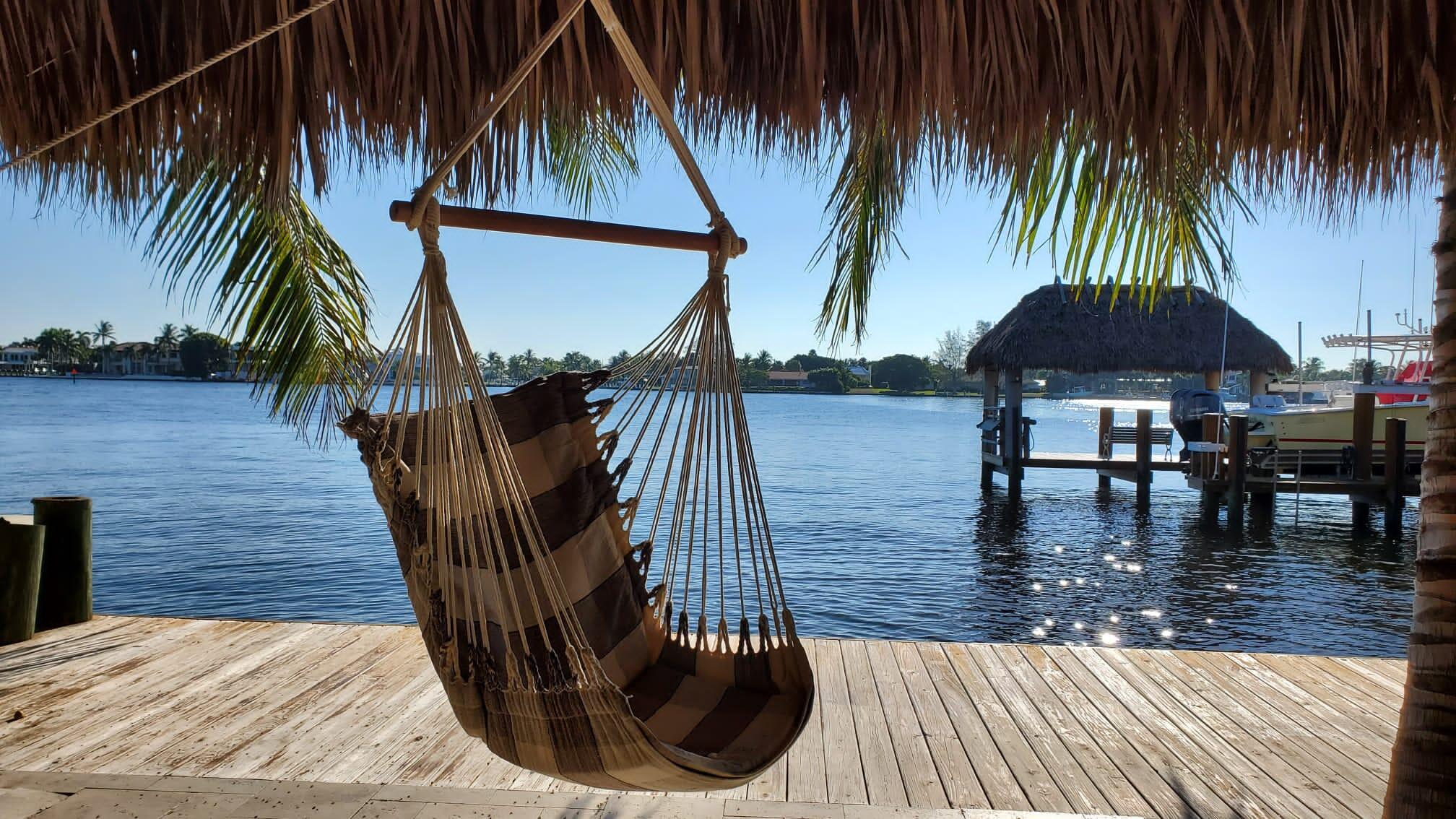 Fully Furnished Just bring your toothbrush. Direct Intracoastal pool home. Boater's delight - to the inlet from your dock in 3 minutes! Boat Dock and jetski lift. Immaculate, well cared for home with picturesque wide Intracoastal views. Located in the boater's haven community of Harbor Estates. Don't wait to see this home. Sleeps 8. Accessible platform LIFT for water sports and BYO jetskis. Available kayaks and paddle boards for use. Lounge on the hammock over the sand or sit in the suspended chair beneath the Tiki Hut. Gourmet outdoor grill and burners. There is an insta-hot Two tikis out door Kitchen Tiki & Dock Tiki, Green egg for smoking, grilling, or homemade pizza. Watch, feed or catch many species of fish off the 160 feet dock