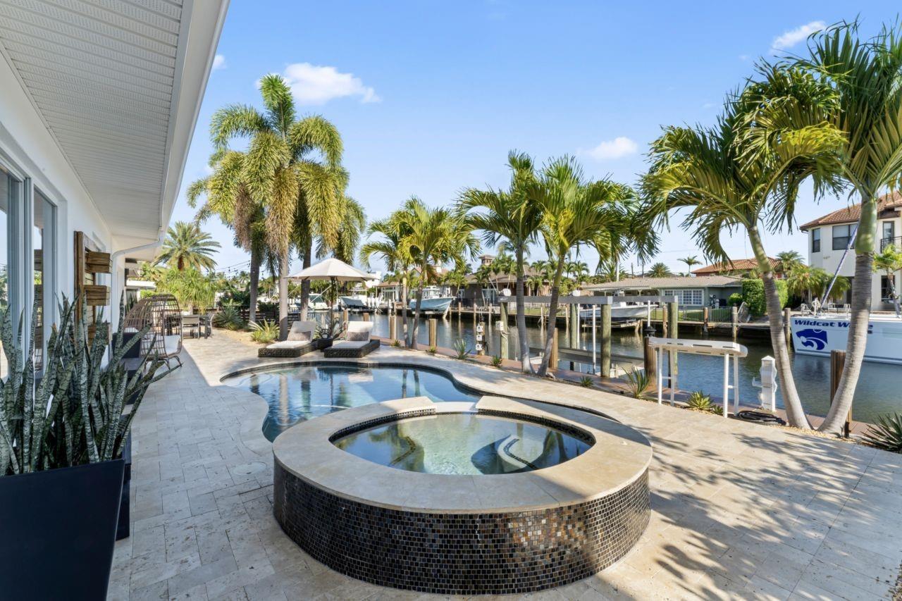 Welcome to your waterfront paradise in sought-after Lighthouse Point! Coral Key Villas is one of South Florida's prime waterfront communities located close to the Hillsboro Inlet, Lighthouse Point Yacht Club, marina, upscale shopping and restaurants. This meticulously remodeled one story 3-bedroom, 3-bath home is a boat lover’s dream with a work-my-boat-dock, new deck, 80 feet of deep-water frontage on an extra-wide ocean-access canal—no fixed bridges for effortless cruising to the Atlantic. Approach the beautifully paved circular driveway elegantly framed by vibrant landscaping and step inside to discover custom lighting, built-in cabinetry, custom closets, impact-rated windows and doors, and designer window treatments throughout.