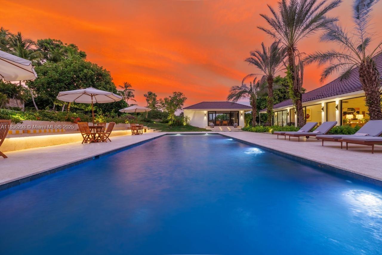Price subject to seasonal change; please confirm in advance. The villa features 5 spacious bedrooms, each with its own TV and dressing room. Enjoy the elegant 15-meter pool, a cozy TV/music studio, and a Sonos surround sound system in the living and pool areas. The courtyard is filled with organic fruit trees such as mango and avocado, along with a trampoline and slide for the children. Experienced and friendly staff provide daily cleaning and cooking. With its blend of style, comfort, and thoughtful design, we offer the ideal space for you to enjoy time together while still having room to relax independently, all in one of Casa de Campo's most strategic and beautiful locations.