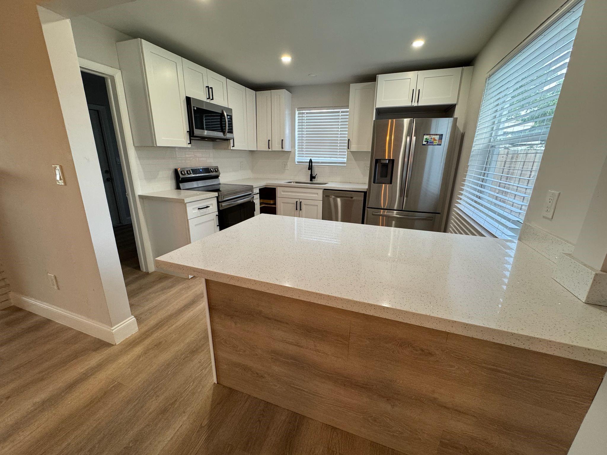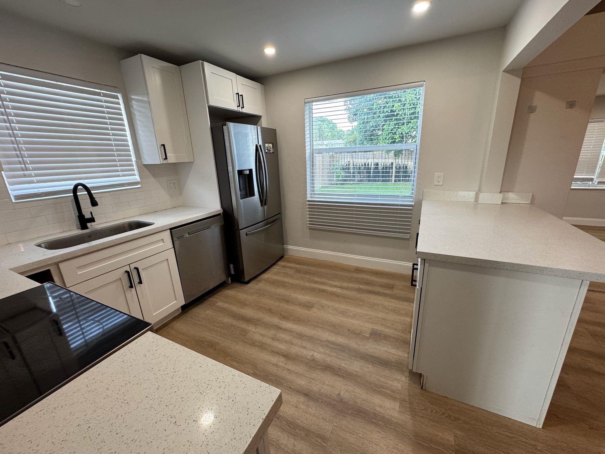 This spacious four-bedroom, two-bathroom single-family home features a long driveway, carport, and expansive backyard. The home boasts a newly renovated kitchen equipped with stainless steel appliances, a full-sized washer and dryer room, and ceiling fans in each room. A+ rated schools. Conveniently located near major highways, parks, and malls.