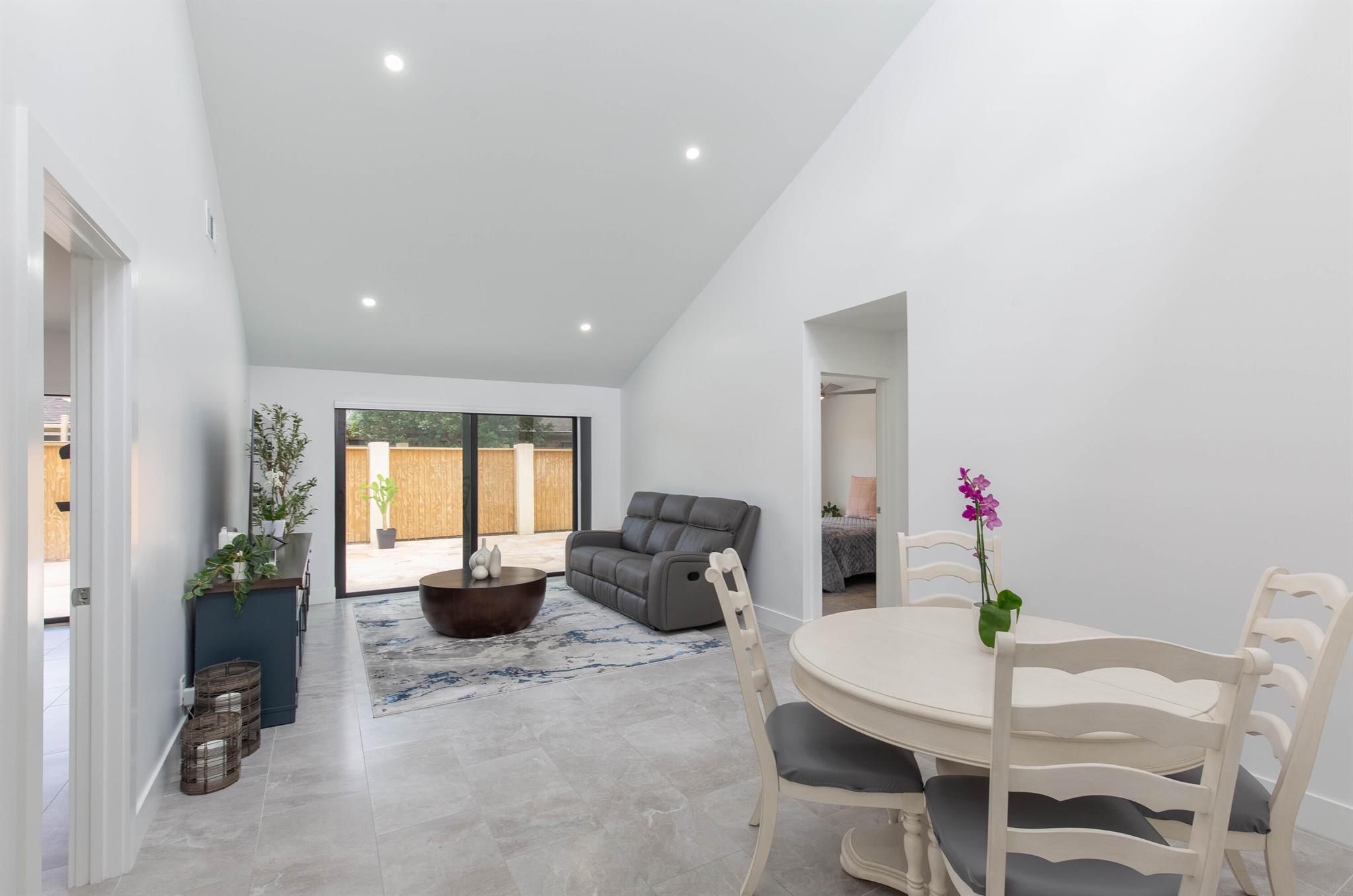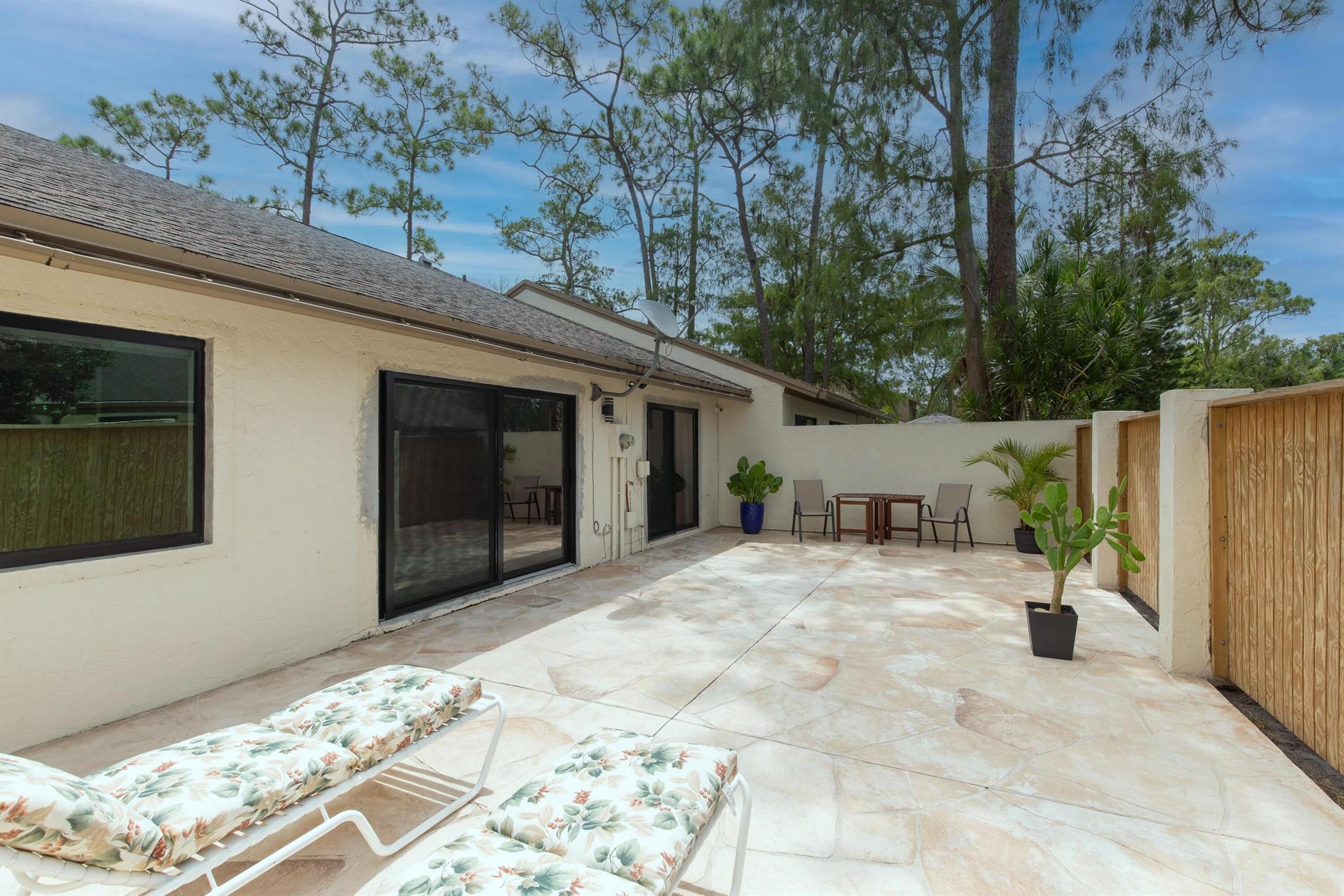 Discover your perfect Wellington seasonal retreat in this beautifully updated townhouse with seamless indoor-outdoor living. Enjoy a bright, open layout with vaulted ceilings, natural light, and porcelain tile throughout. The sleek kitchen offers white cabinetry, stainless appliances, and a breakfast bar flowing into the spacious living area. Sliding doors open to a private patio ideal for dining or relaxing. The primary suite features patio access, a walk-in closet, and a spa-like bath. Enjoy a one-car garage, driveway, and community pool near shopping, dining, and equestrian venues.