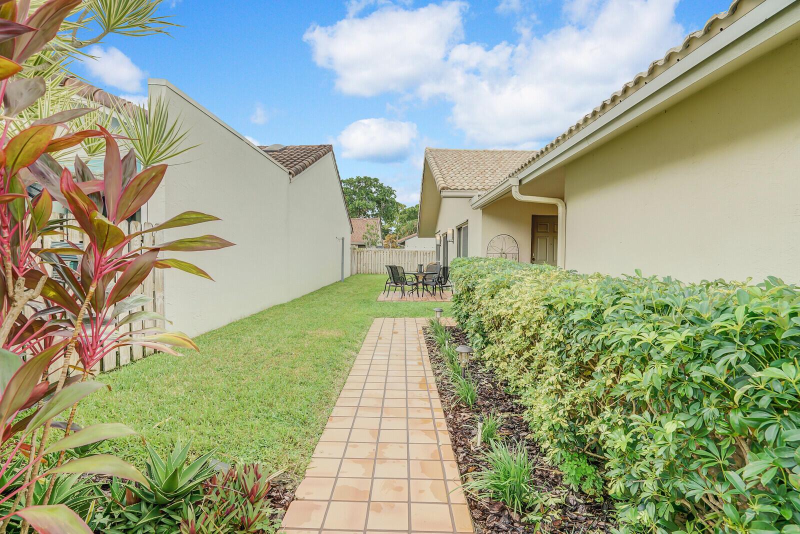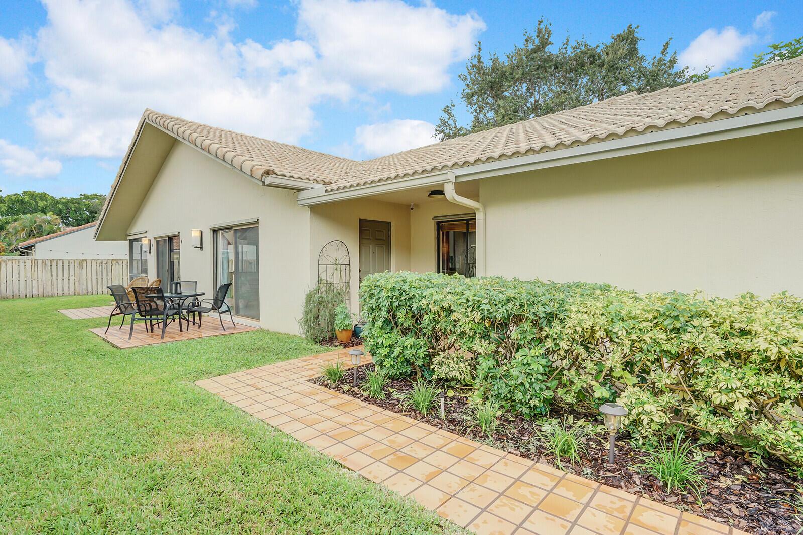Newly remodeled family room with ample windows and views of the garden. Volume ceilings, custom lighting, kitchen island, conduction range, screened patio with outdoor seating. Bonus room: office/den. Plenty of closet space. Fully fenced garden with ample parking in a quiet Cul de Sac. Rainberry Lake is 3 miles from the beach and close to popular Atlantic Ave. Pool, tennis courts, pickle ball, basketball courts and gated community. Water and internet included.