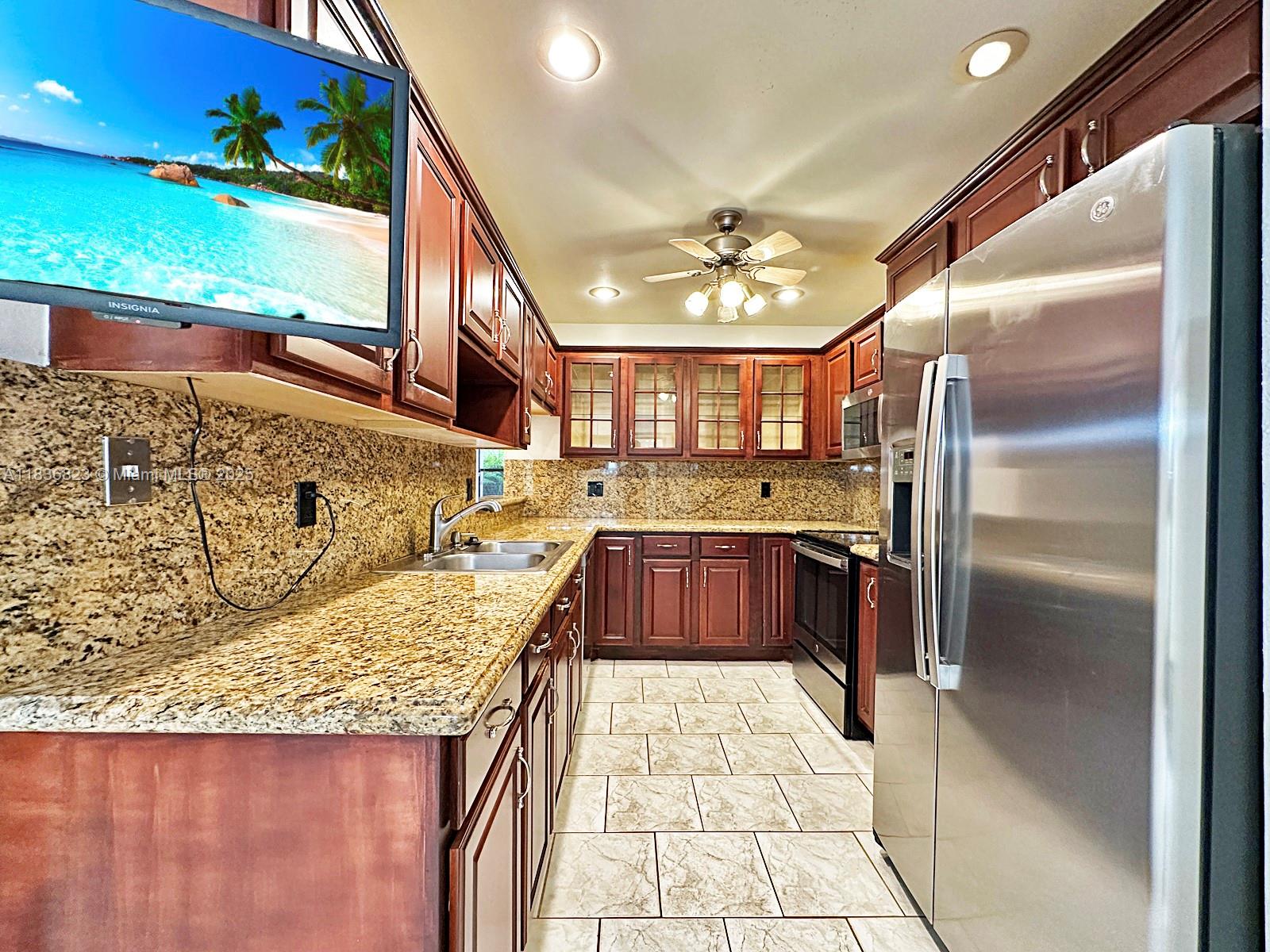 Impeccably maintained, single story townhome at sought-after Kings Court West. This residence features vaulted ceilings, 3 bedrooms / 2 baths plus extra room/den with over 1,580 sqft under A/C. Freshly painted and ready to move in with tile throughout, granite counter tops, stainless steel appliances, large primary bedroom and private bathroom with his/her custom closets, open dinning/living room, plenty of storage space, enclosed interior atrium complete with skylight and water pond, 1 car garage. Community features include; 24 hour patrol security, two pools, basketball court, tennis courts, kids play area, near great schools, restaurants, turnpike, palmetto, MDCC, Baptist Hospital.
