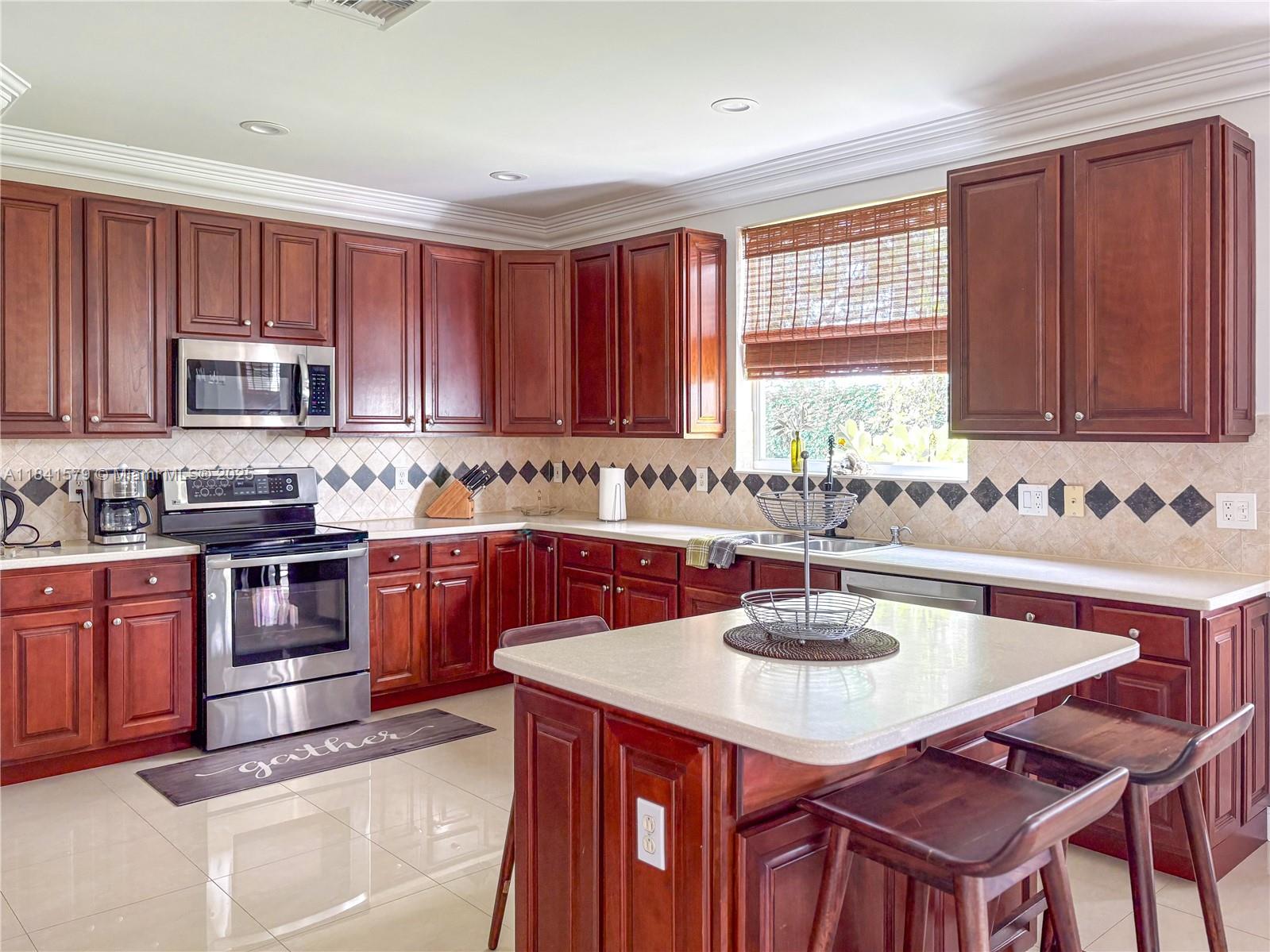 Excellent location in gated community with pool and clubhouse. Available for seasonal or annual rental. Upstairs master bedroom features walk-in closet and private sitting area. Master bath includes freestanding Roman tub, separate shower, and double sinks. Balcony overlooks backyard—perfect for enjoying Florida sun. Three spacious bedrooms and two baths upstairs. Hardwood floors throughout second level. Tile and hardwood flooring downstairs. Formal living and dining rooms. Eat-in kitchen with center island.