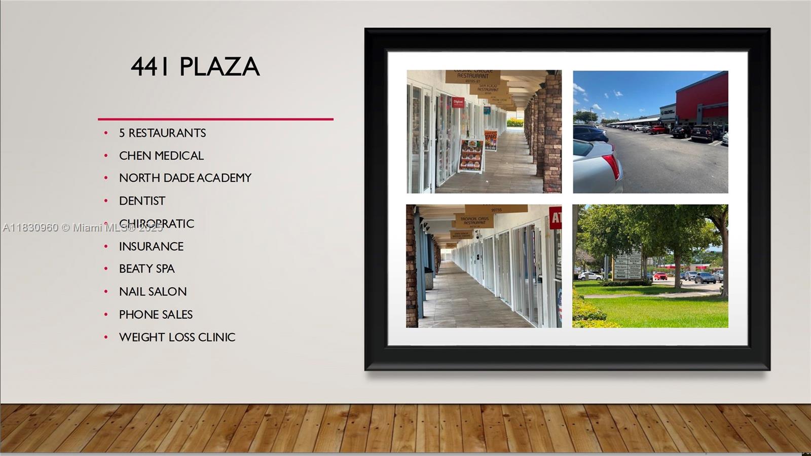 Prime Retail Space for Lease - US-441 Plaza, Miami Gardens Seize a fantastic opportunity at the bustling US-441 Plaza in Miami Gardens! We're offering two adjacent commercial retail spaces totaling 1920 sq/ft, featuring ceramic floors and two bathrooms. The spaces are available for $3250/month for one unit or a combined $6250/month for both. Benefit from a daily traffic count of over 65,000 cars on US-441, ensuring massive visibility. This location is further enhanced by a dense residential area in all directions. Located in a hot commercial corridor, this plaza is extremely busy, neighboring 25+ diverse tenants, ensuring high foot traffic and strong business potential. Don't miss out on this prime retail location!