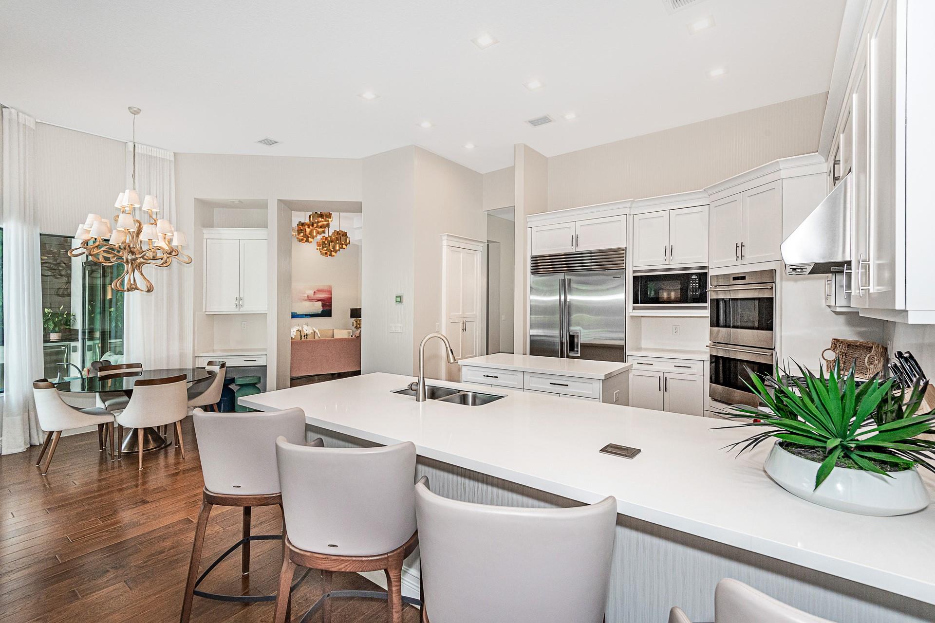 Eminent famed Seven Bridges gated community! Impressive Charletston model-Largest One Story Ranch! True 5/5 custom composition! Fully furnished by esteemed Brazilian designer! ORIGINAL OWNER spared no expense in furnituree & home upgrades! Soaring 12' & 14" ceilings throughout! Home generator water filtration system, Toto Toilettes, Engineered Wood Floors, Customized Closets. Sprawling oversized pie shaped lot, circular driveway on cul-de-sac st.! Outstanding entertainer's backyard -designer salt water heated pool features sun tanning shelf, swim up bar & large jacuzzi! Outdoor covered kitchen-BBQ, sink, refrigerator, ice maker, cook station with range. Sprawling covered outdoor dining area overlooking pool & wide serene canal waterview!