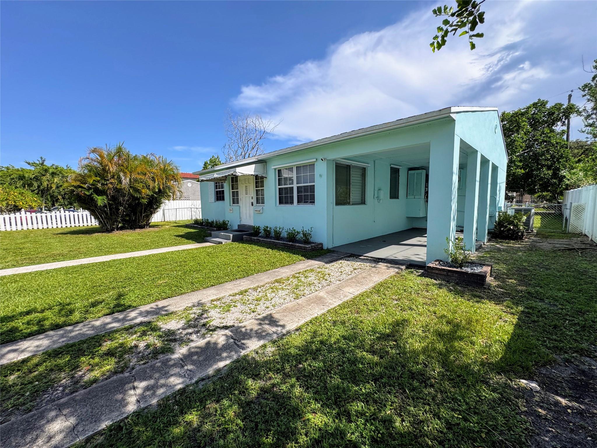 Light & Bright with BONUS additional front room. PET friendly with large FENCED yard. Prime location! Full size Washer and Dryer in attached spacious Utility/Storage room. Central A/C . Wood floors with tile in wet areas. Attached Carport and private drive for added convenience. Detached Private house, EAST of Federal Hwy less than 2 miles to beaches and amazingly convenient to everything! No HOA! Available immediately! Must see. Lawn mowing included