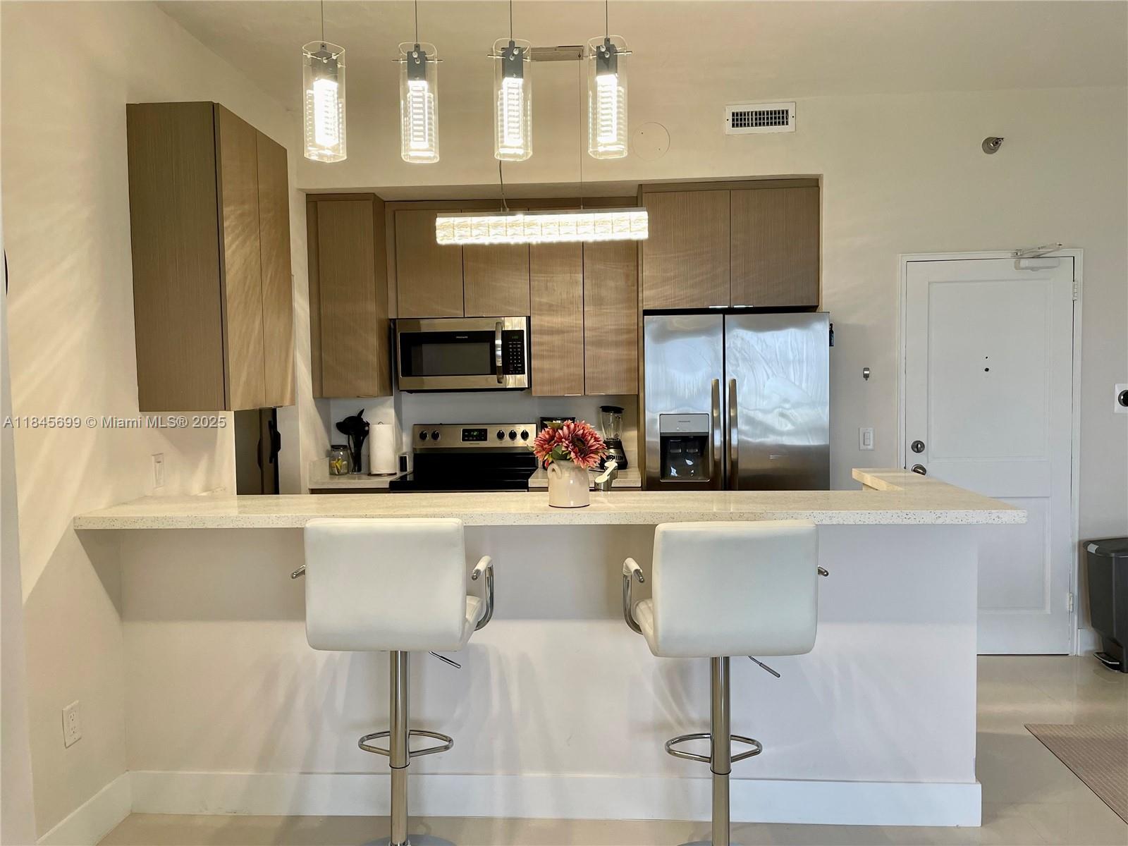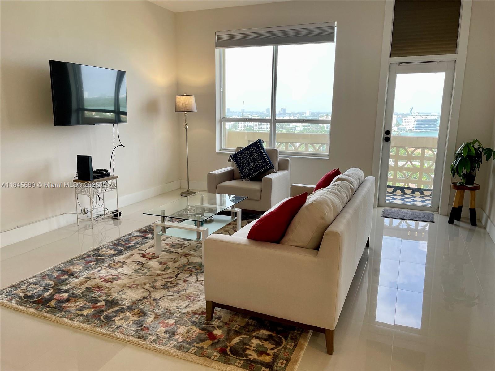 Amazing view of Bay Harbour Islands and Biscayne Bay from this ocean front Penthouse near Bal Harbour Shops. Magnificent sunsets. Unit is totally remodeled, 12 foot ceiling height, the second bedroom is a Den and the second bathroom with tub/shower. Master bathroom has an oversized shower and Toto toilet/bidet. New tile flooring throughout, made to order designer kitchen cabinetry and new top of the line stainless steel appliances. Fully furnished. Valet parking space #129. Building has oceanfront pool and beach service.