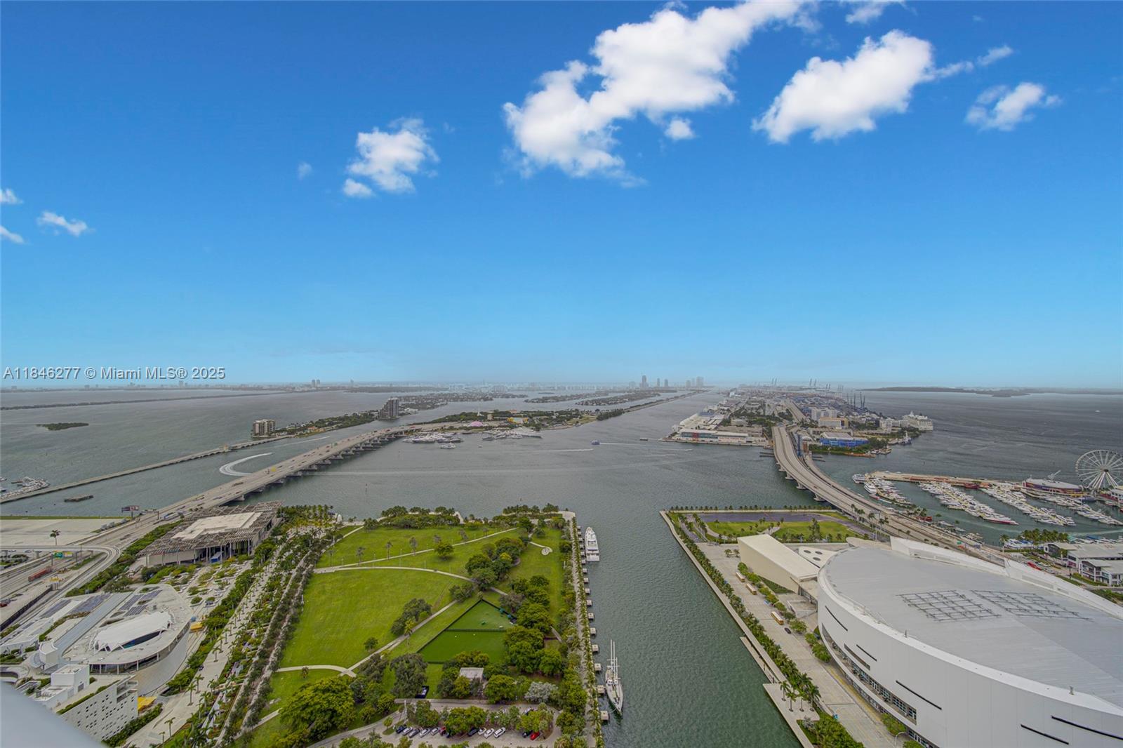 Live above it all on the 52nd floor with stunning, direct views of Biscayne Bay, Miami Beach, and the city skyline. This 1BD + den, 1.5BA sky-high condo features 10' floor-to-ceiling impact glass, a spacious flow-through layout, marble floors, Italian cabinetry, and top-tier Miele & Sub-Zero appliances. The large primary suite includes panoramic views and walk-in closets. Enjoy luxury amenities: 2 pools, spa, state-of-the-art gym, resident lounge, theater, kid's playroom, concierge, and valet. A true condo in the sky.