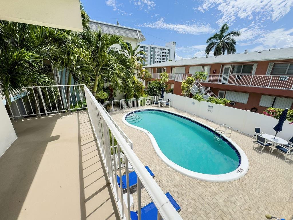 Welcome home to Hibiscus House, a 14 unit boutique residence in Pompano Beach's A1A corridor. Enjoy easterly views from your second floor screened patio and walk across A1A to the pristine beaches and Pompano Beach pier. This 1 bedroom, 1 bath condo has a newer A/C, and water heater, and accordion shutters for full hurricane protection, freshly painted, storage and more. A large enclosed balcony to enjoy year-round. The building is also pet-friendly. Pompano Beach is exploding in growth with one of the nicest beaches in Florida. Shop, eat and more just blocks away at many new Restaurants and Retail Businesses. Quick and easy Approval!