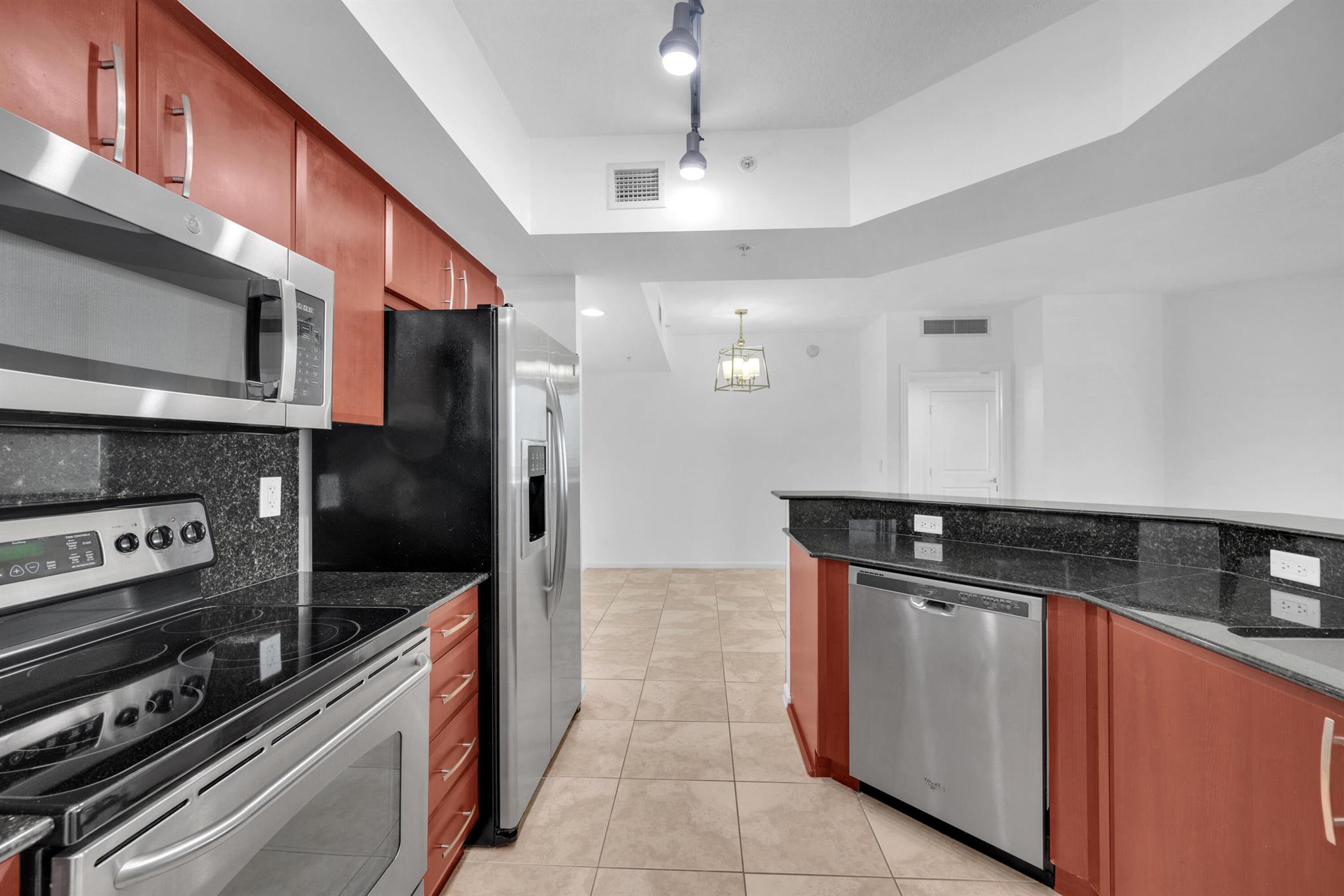 Meticulously maintained 2 Bedroom/2Bath. Enjoy beautiful Sunsets and Expansive City views. Spacious, open floor plan with Separate Dining area and Private Balcony. Both Master and Guest Suite have ample walk-in closets. Luxurious Master Bathroom w/separate tub and shower. Guest Suite has a separate close off to the large bathroom, ideal for privacy. Beautifully appointed Kitchen. Full size W/D in unit. Tile throughout Living areas. Newer Carpet in Bedrooms. Rooftop Pool. Fitness and Business Centers. Community Rm w/ outdoor Zen Garden area. 24/7 Front Desk attendant. Metropolitan is a Full Service Luxury Boutique Building in the most Convenient Downtown location. Steps to City Place, Restaurants, Shopping, Kravis Center. Minutes to Palm Beach Island, Beach, Worth Ave. FLEXIBLE LEASE TERM!
