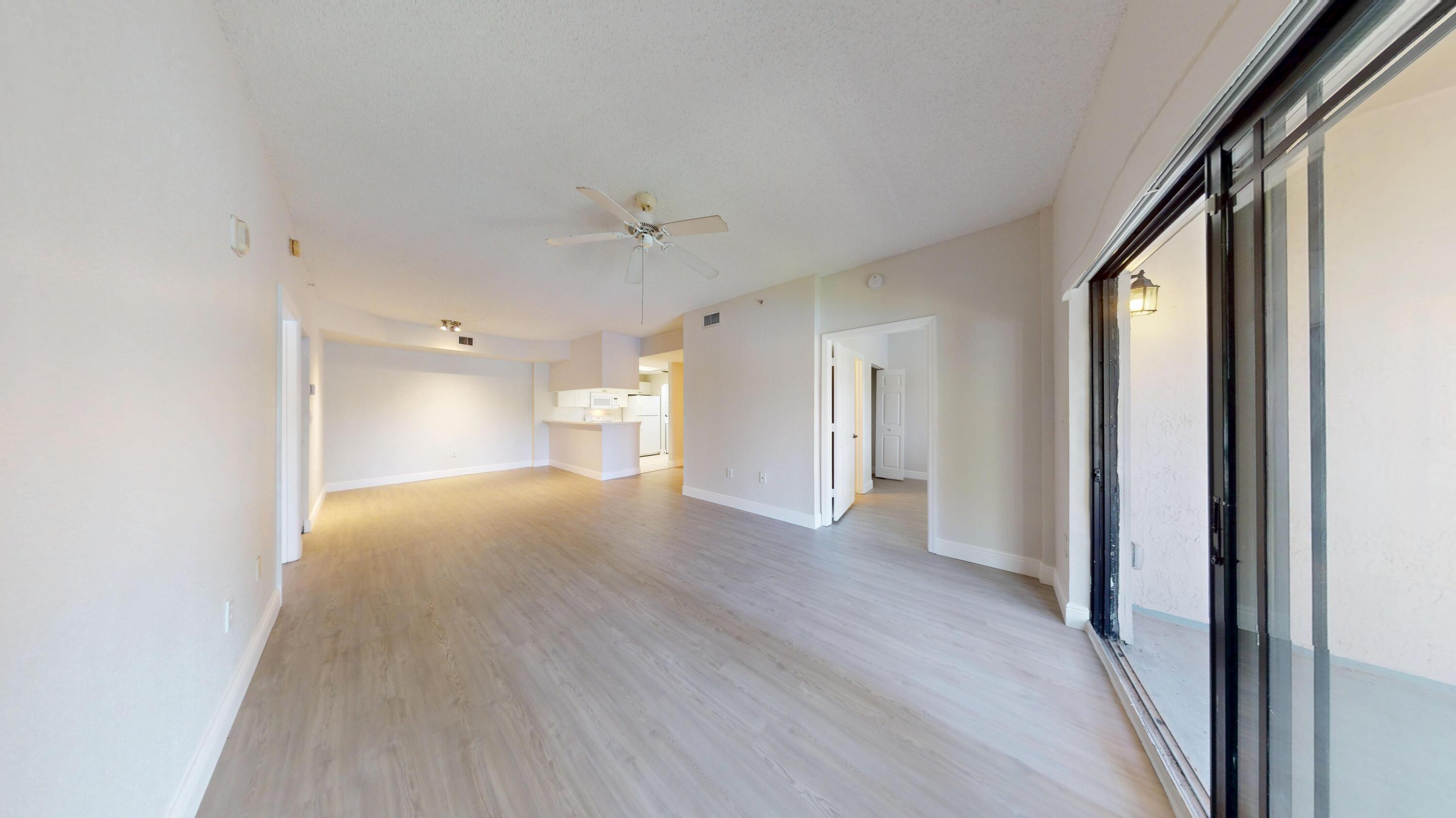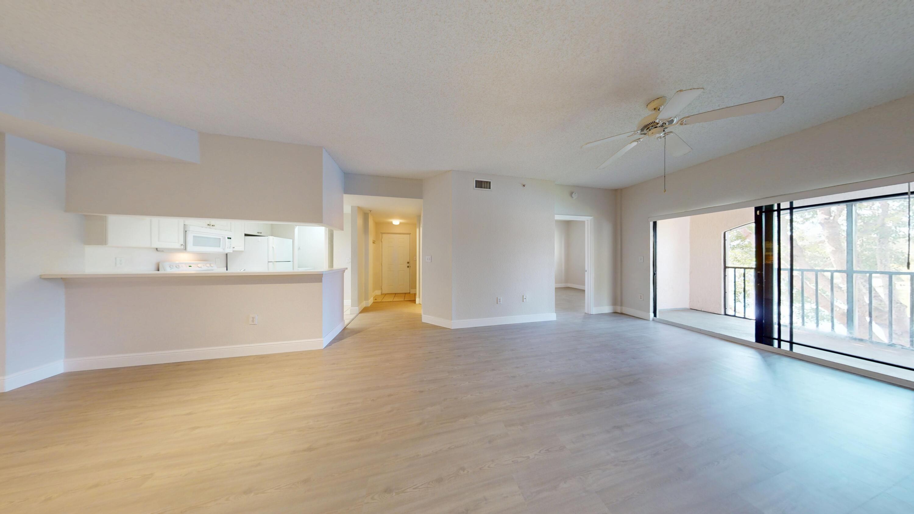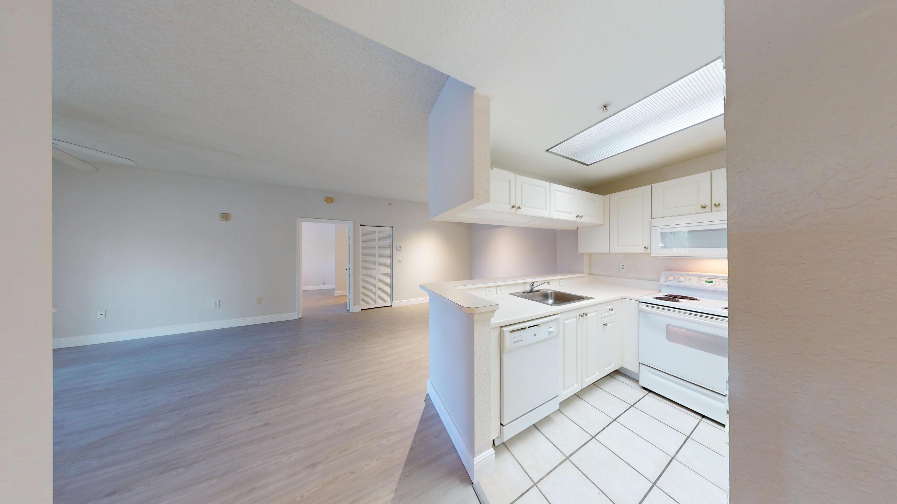 This spacious 2 bed/2 bath 2nd-floor condo features 1057sq feet in the quiet community of San Matera. The kitchen has plenty of cabinet space and features a complete appliance package including refrigerator, stove, microwave and dishwasher. With custom lighting, fans in each bedroom and a split floor plan make this condo great for entertaining! The home offers new flooring and features an 85 sq. ft private screened, shaded balcony with stunning views of the lake, mature trees and well kept lawns. Full size Washer & Dryer. San Matera is a private gated resort that includes 2 convenient parking spaces, large pool, spa, business center, tennis courts, a children's playground and a state-of-the-art fitness center. This condo is close to everything including Downtown Gardens and the PBG mall