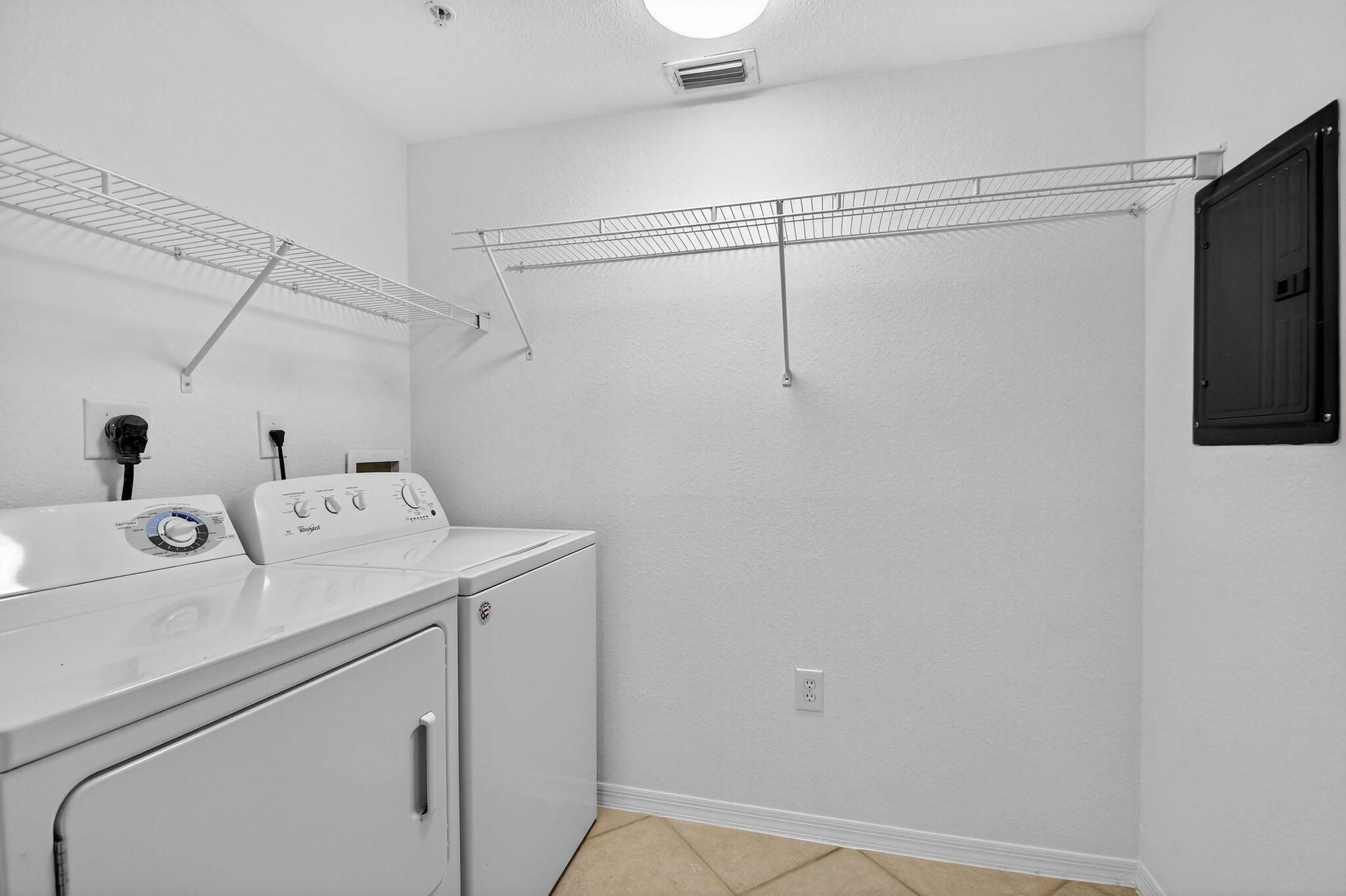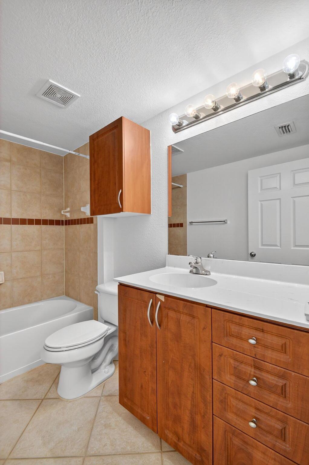 Welcome to Emerald Dunes! This bright and spacious 2- bedrooms and 2- bathrooms condo is conveniently located in gated West Palm Beach community. The Kitchen features granite countertops and stainless steel appliances, separate dining area and designated laundry room. The seamless flow of tile and laminate wood flooring throughout. The primary bedroom boasts a walk in closet and bathroom with separate shower and bath tub. Private balcony, two assigned parking spaces. Resort style amenities include two pools, tennis courts, a fitness clubhouse. Conveniently located close to Turnpike and all shopping.