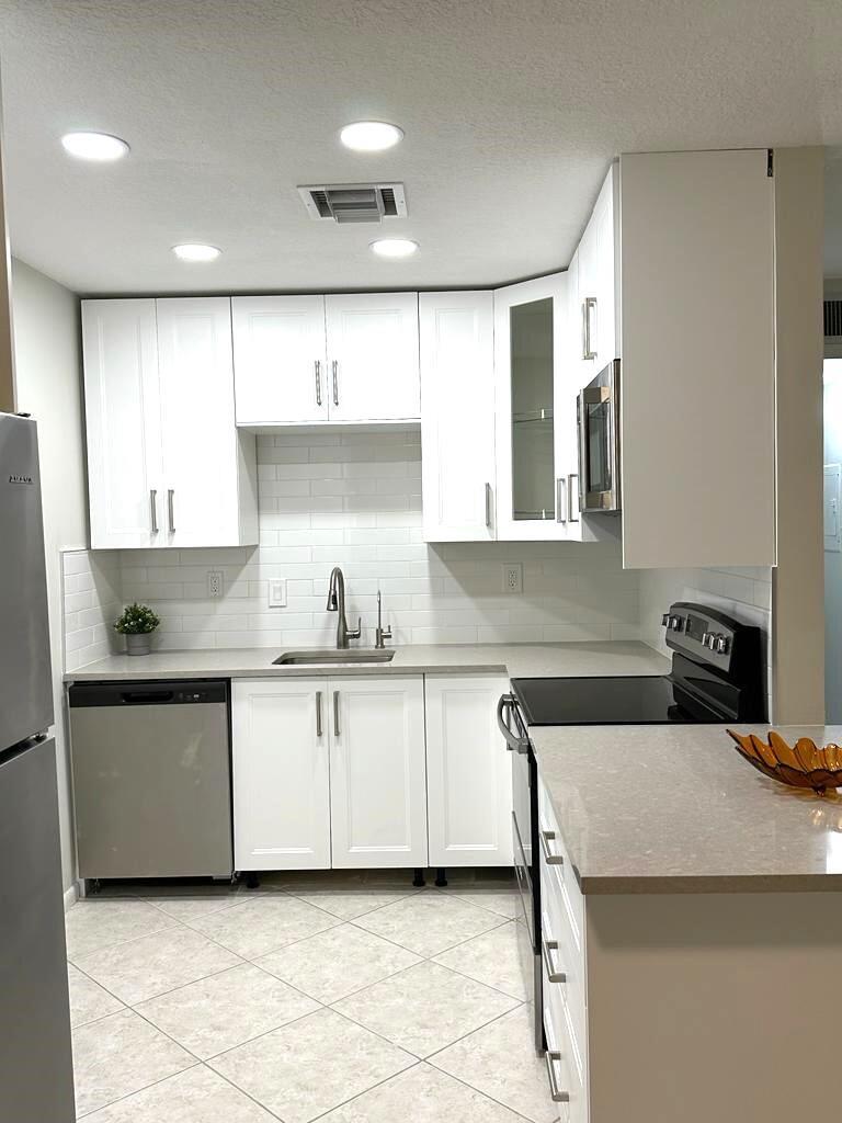 Beautifully Renovated 2-Bedroom, 2-Bath Condo in Active Adult CommunityStep into this light and bright second-floor unit, completely renovated for modern comfort. Featuring impact-resistant windows and sliding doors, brand new washer and dryer, upgraded lighting, and no popcorn ceilings, this home offers both style and peace of mind.The remodeled kitchen boasts upgraded cabinets, a sleek tile backsplash, and quartz countertops. Both bathrooms have been tastefully updated with newer vanities and elegant porcelain tile.Enjoy a spacious balcony overlooking a serene garden view. The building includes an elevator for added convenience.This home is ideally situated near major roads, medical centers, shopping, dining, and just a short drive to the beach and Atlantic Avenue.