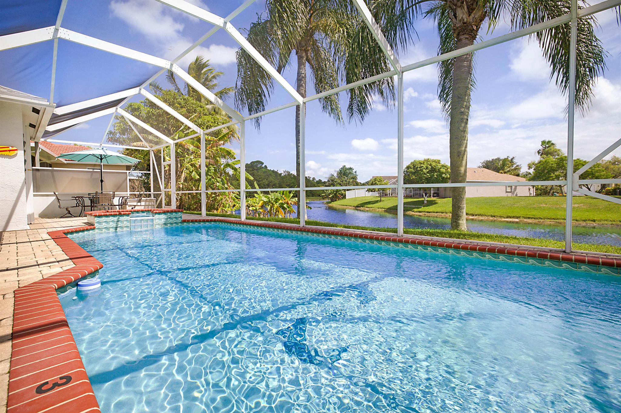 Welcome to your dream home! This stunning 3-bedroom, 2-bathroom oasis on the water boasts one of most breathtaking waterfront views in all of florida. Unwind in the luxurious jacuzzi or make a splash in the oversized pool, perfect for gatherings! Located walking distance Okeeheelee Park, ideal for active families who love the outdoors! This isn't just a house; it's a home, a place where memories are made. Ready for immediate move-in, your new home awaits!