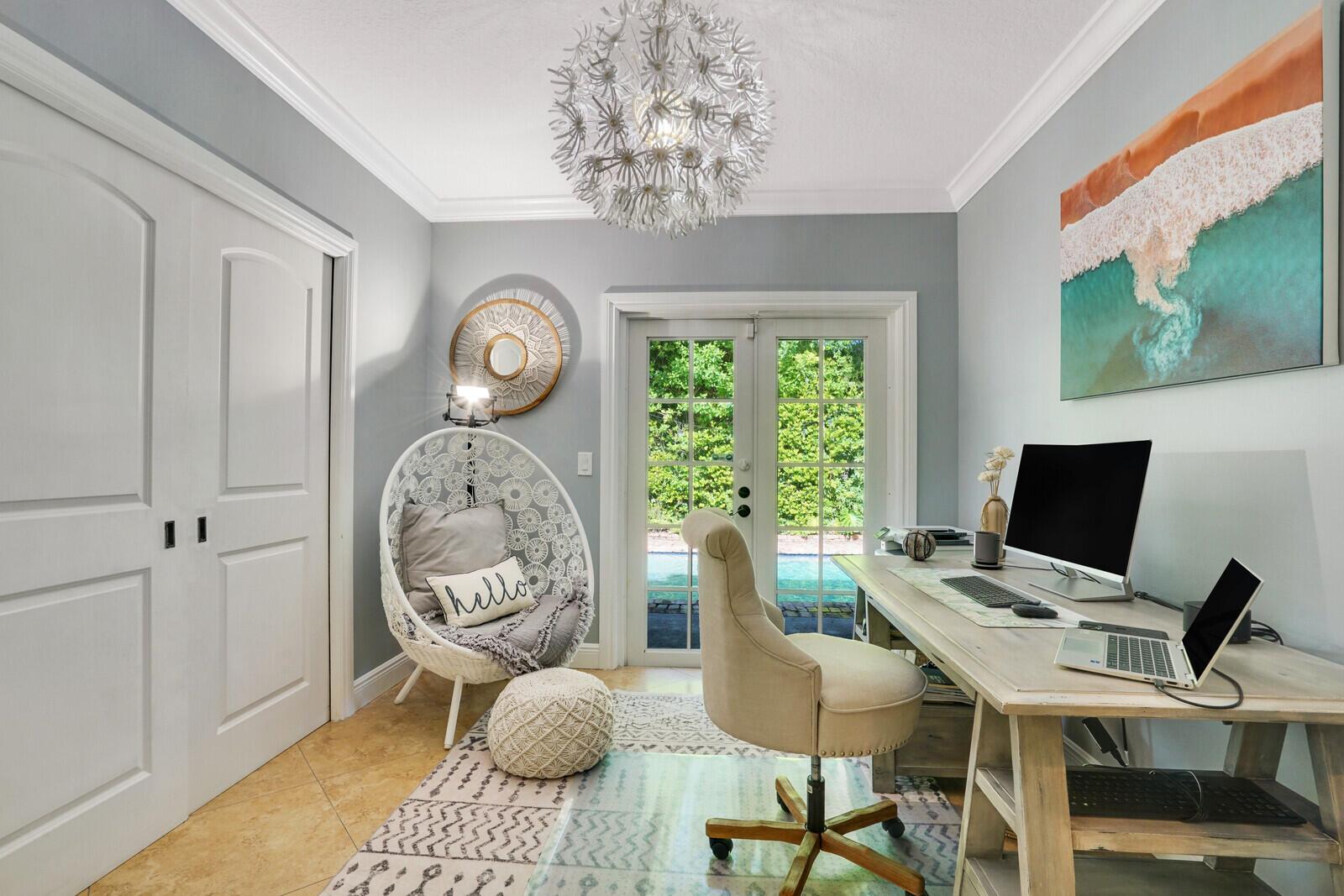 This is a charming 3 bedroom with an office/den or 4th bedroom with pool, outdoor lounging area and a welcoming front porch with a swing, single family home! The property has additional features such as a 2-car garage, an oversized pantry, an additional patio besides the pool area, French doors, newer appliances, steam shower, dual vanities, soaking tub, fully fenced in private backyard oasis and so much more. Ideally located in highly sought after Chapel Hill in East Boynton within close proximity to vibrant downtown Delray Atlantic Ave shopping, dining, green market, festivals, concerts and Delray Beach pristine beaches.
