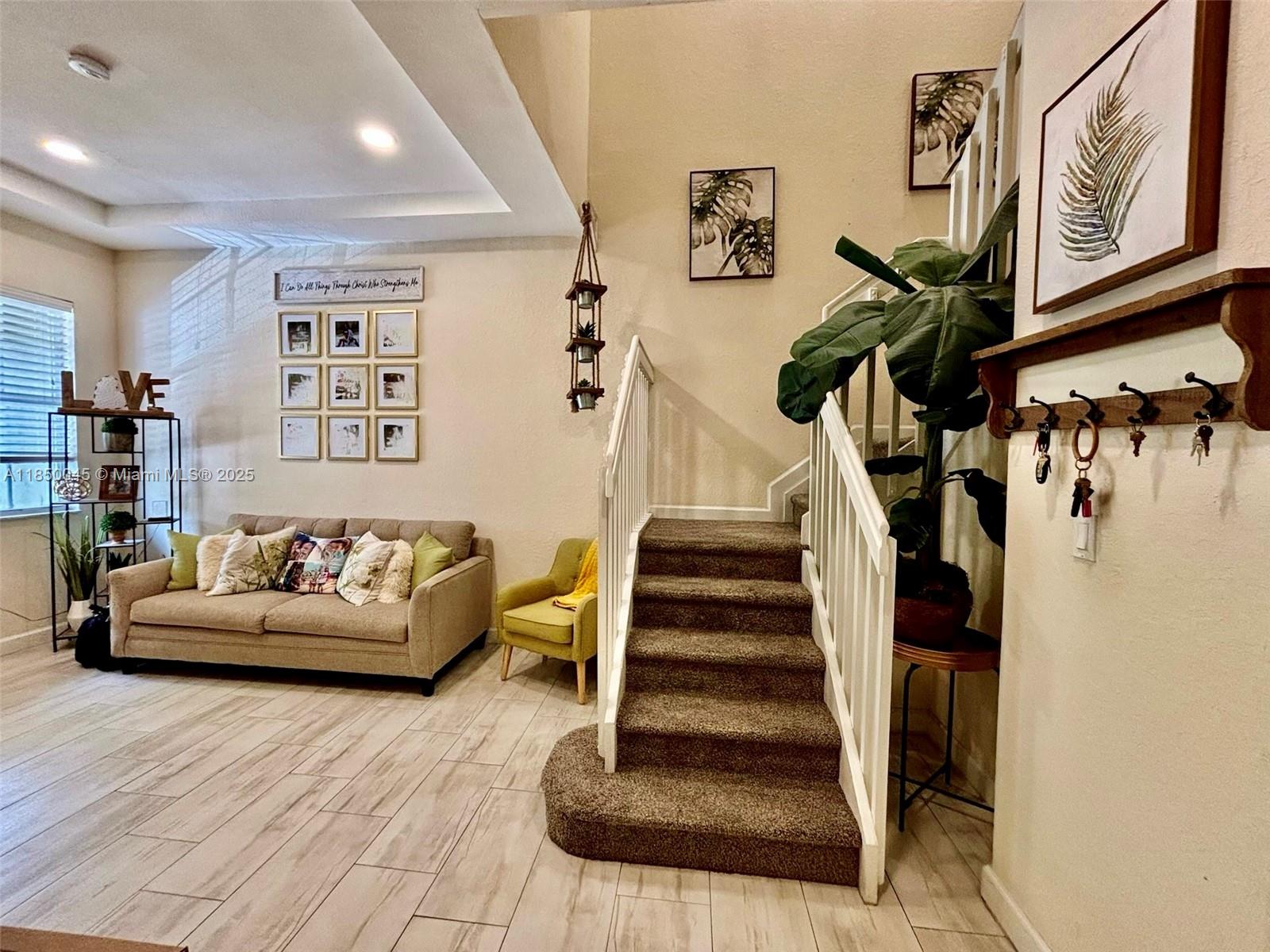 Designed for comfortable living. This upgraded 3-bedroom/3-bathroom gem is waiting to welcome you home! The 1st floor opens with a foyer entry & flows into a formal dining area. The sleek updated kitchen features quartz countertops/custom bar, ideal for casual meals & hosting guests. The spacious living area is perfect for relaxing or gathering, complete with ambient lighting, tile flooring, full bath, newly covered back patio, ceiling fan & private fencing. The upstairs' expansive master suite has 2 walk-in closets & double-sink vanity for added convenience. 2nd bedroom has a private balcony & shares a full bathroom with the 3rd bedroom. Laundry room, versatile space/desk nook, 1-car garage, 2 private parking spaces, gated community pool, gym, playground, & dog park. Section 8 welcome.