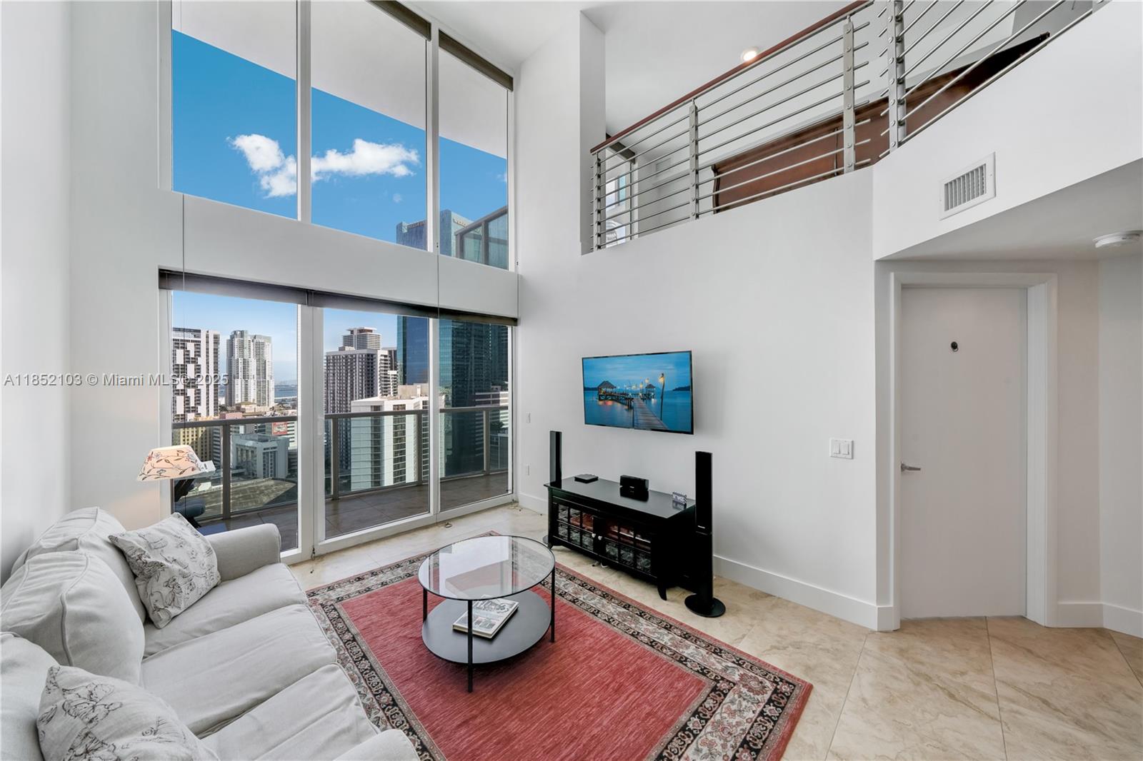 A stunning two-story loft with an abundance of natural light entering from the floor to ceiling windows. Enjoy panoramic views of the Miami Skyline, Biscayne Bay & Miami River from your 3 balconies. This remarkable unit offers 2 bed/2 bath, ss appliances, stylish kitchen & island, vaulted ceilings, huge walk-in closet, storage, W/D. The lower level boasts a cozy second bedroom & balcony. Enjoy the spectacular four floors of luxurious amenities such as a conference room, party room, billiards, ping-pong, gym, yoga room, cardio room, spa, two swimming pools, BBQ area, 24-hour front desk concierge, Pet friendly. Available for 181 days lease of 1 year lease. This is an absolute must-see property! Close to Brickell City Center, excellent restaurants, beaches, entertainment and more!!