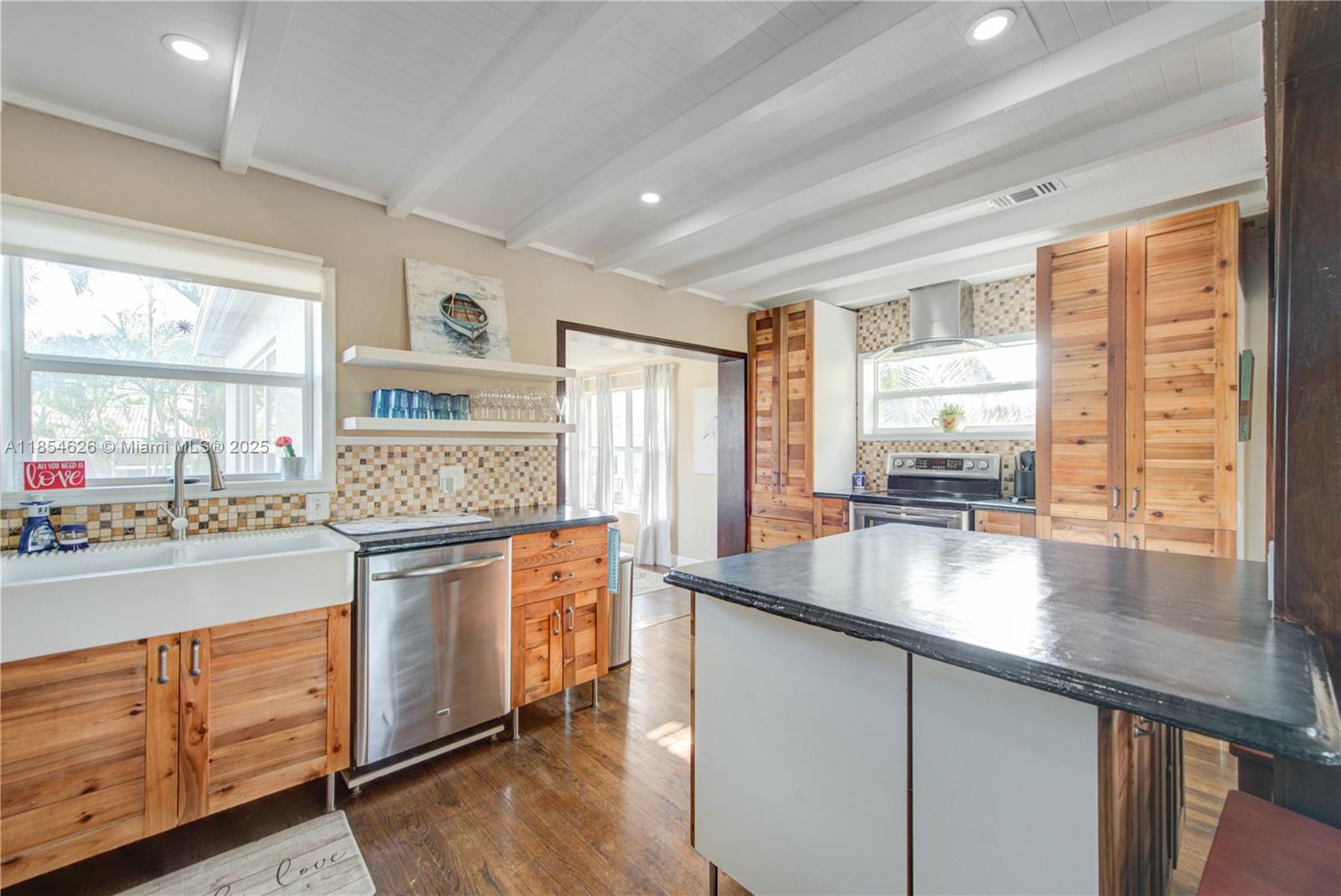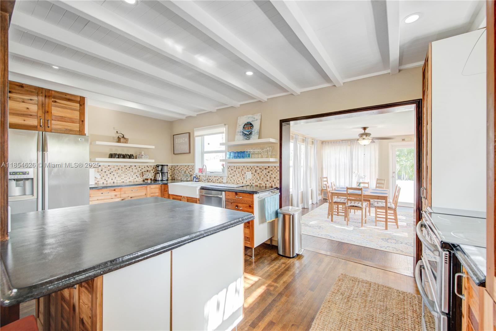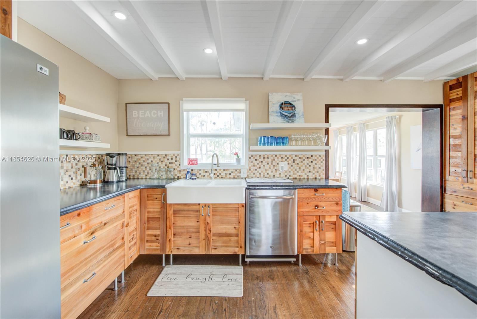 Welcome to this lovely 2 story SFR on an oversized 7407 Sq ft lot. Located in Hallandale Beach's most coveted area, where it's an easy bike ride to the beach, and less than a mile to Anchor Shopping Center and Gulfstream Park. This home has a very unique floor plan with 3 levels, where there are 2 bedrooms on the 1st level with a full bath and attached garage. The next level you will find a beautiful open concept kitchen with an island, a dining room overlooking the spacious backyard and a family room in the front with oversized windows. Upstairs is the private master's suite with a spa-like bathroom and a walk in closet with a barn door. Impact windows throughout and in a very quiet, walkable neighborhood.