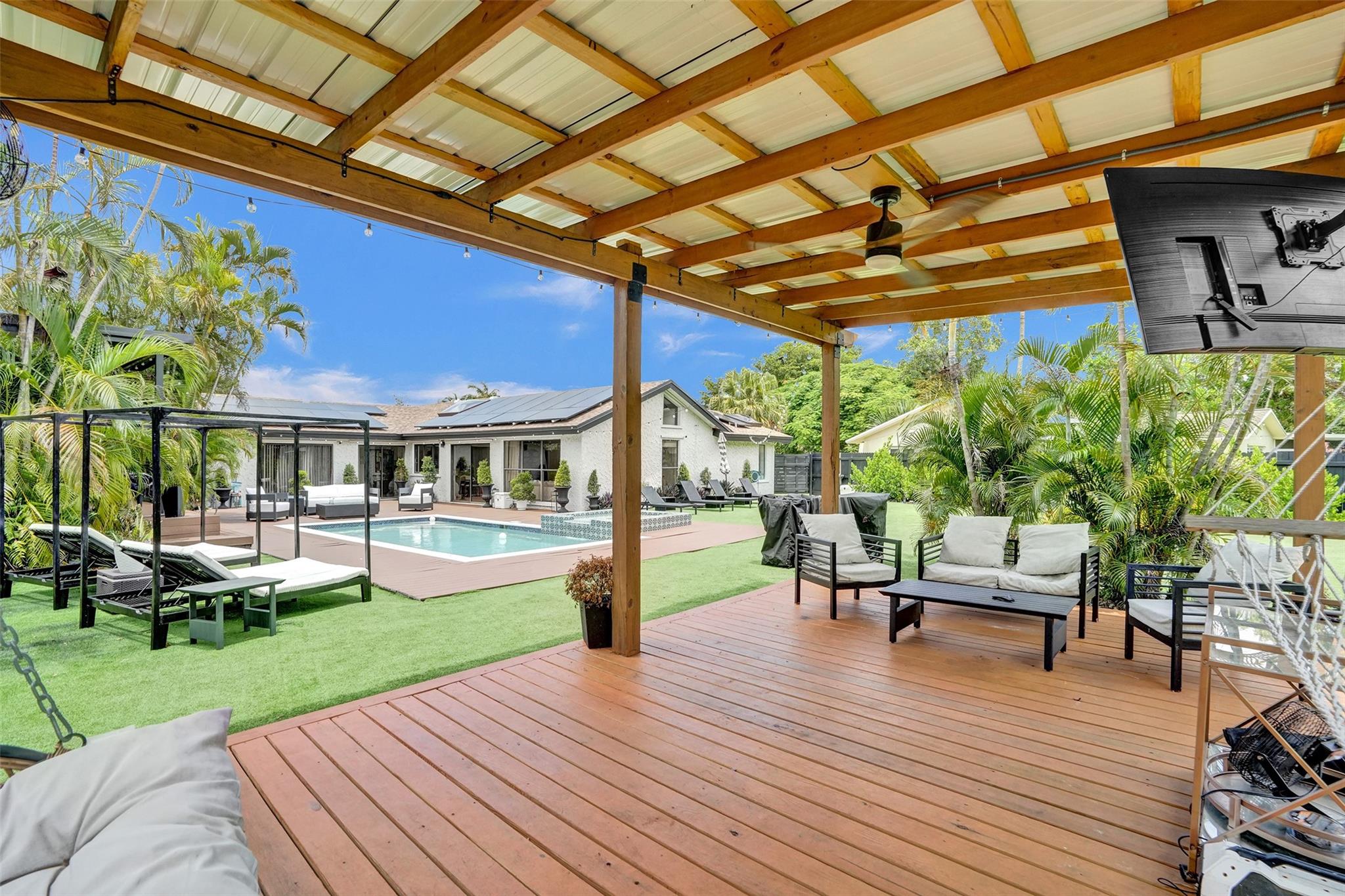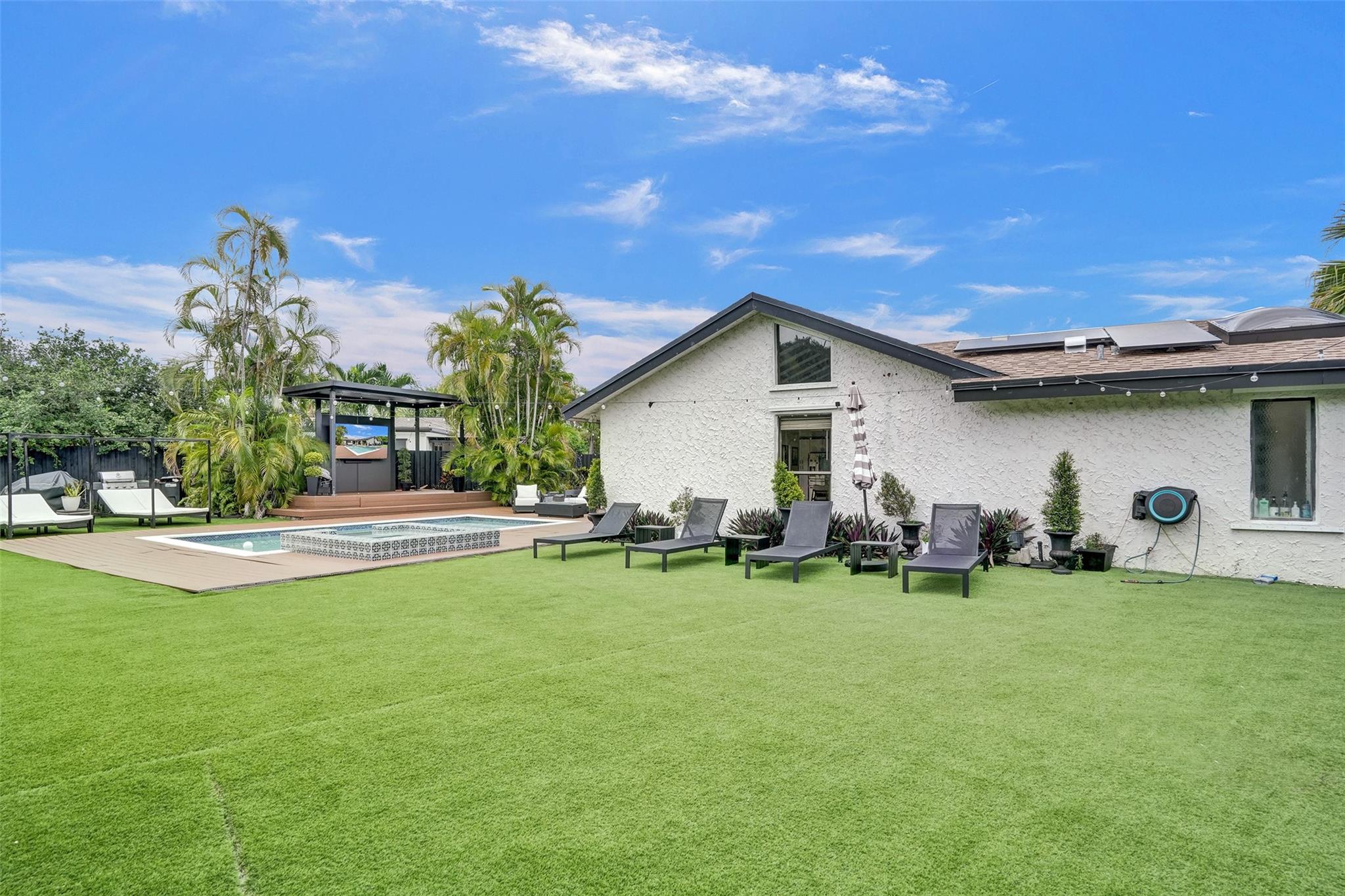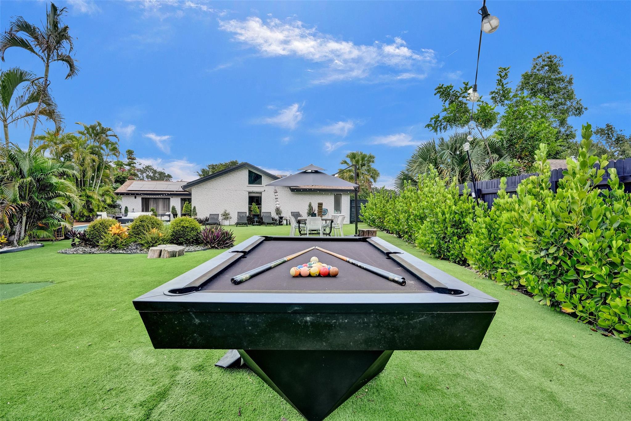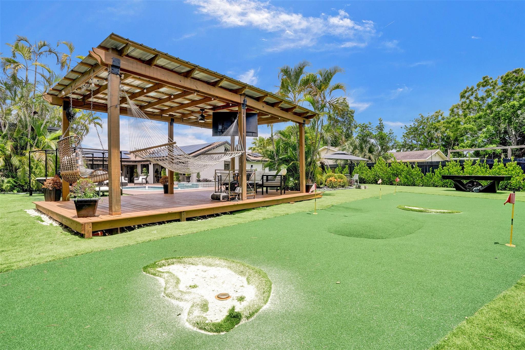 Luxurious 4BR smart home for annual lease in exclusive Palm Aire Village, tucked away on a quiet cul-de-sac. Fully remodeled with soaring vaulted ceilings, spacious bedrooms, and a gourmet kitchen with high-end finishes. The resort-style backyard is an entertainer’s dream, featuring a heated pool, spa, sauna, large putting green, artificial turf, two covered patios, multiple outdoor TVs, pool table, and luxury day-club-style furnishings—all set against a tranquil waterway. Solar panels and a 2-car garage with smart charger. Backyard furnished; interior unfurnished. No subleasing. Available starting September 1, 2025!