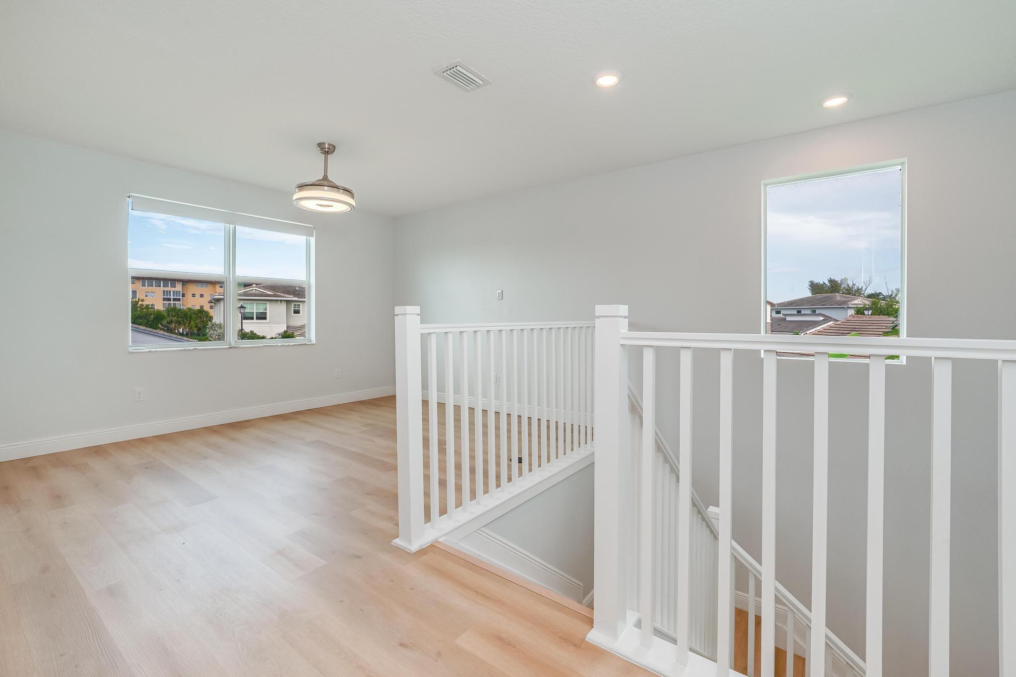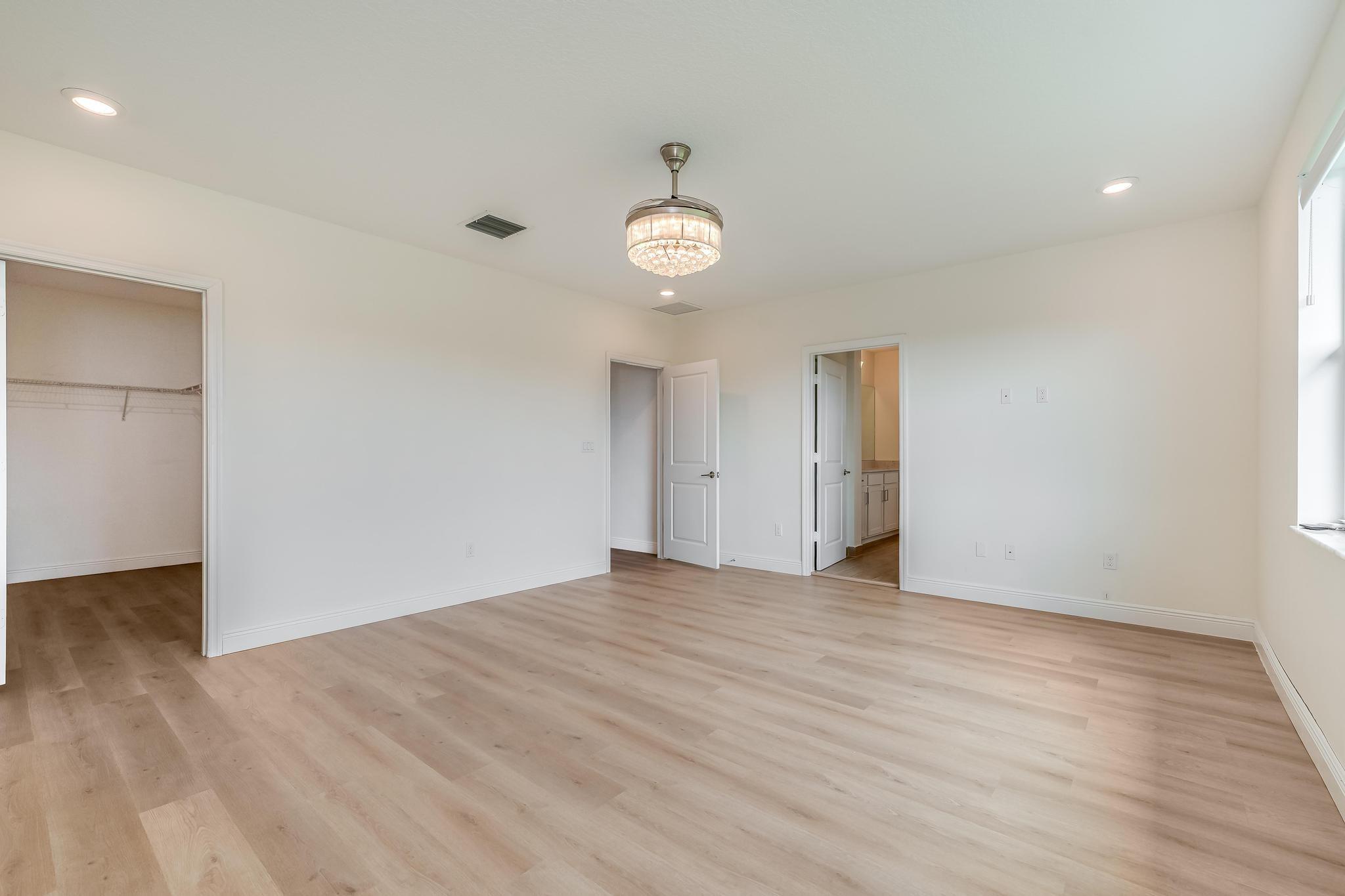 Deluxe Home in Gated, Pet-Friendly Veleiros! Unique Rioja Model is 1 of the rarest & most desirable floorplans on XL Lot. Covered entry opens to foyer & 1st floor bedroom suite, then onto separate dining & great room. Open-plan kitchen w/stainless steel appliances/wall oven+microwave/cooktop+hood, quartz counters+island, pantry & hall to 2-car garage. Covered paver patio opens to sizable yard. Lawnmowing included. Upstairs, master suite spans width of home w/master bath feat. dual sinks & step-in shower + walk-in closet/dressing room. BOnus loft perfect for den/home office. Laundry room & 2 more bedrooms + guest bath on 2nd level. Ceramic wood-look tile in living area, LVP in bedrooms, impact windows & sliders. Clubhouse/Pool. HOA Requires 720+ Score for all adults and 35% or lower RTI