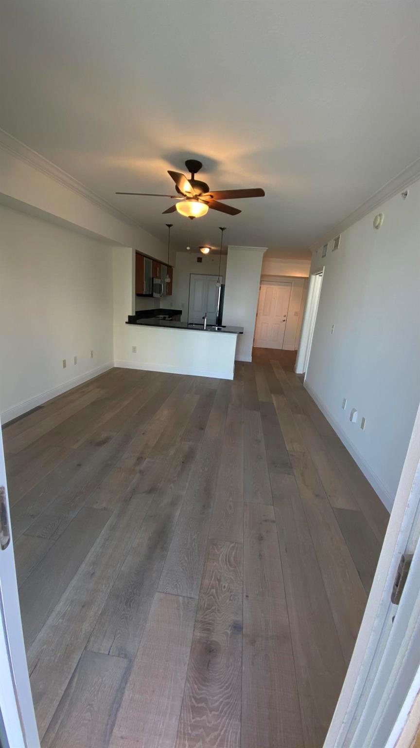 Ideally located in the Heart of Downtown West Palm Beach, this modern 1-bedroom, one bathroom condo offers a spacious and stylish living space in the sought-after Prado community. The open kitchen features stainless steel appliances, wood cabinetry, and polished black granite countertops, perfect for entertaining. Wood floors adorn the master bedroom, living room, and den/dining area, creating a warm and inviting atmosphere. The unit includes custom window treatments and a small private balcony. Enjoy all the amenities Prado has to offer, including a 24-hour attended lobby, luxury pool, clubhouse, beautifully landscaped garden area, and a well-equipped workout facility. Ideally situated just one block west of Flagler Drive and the Intracoastal Waterway, with a short walk to CityPlace,