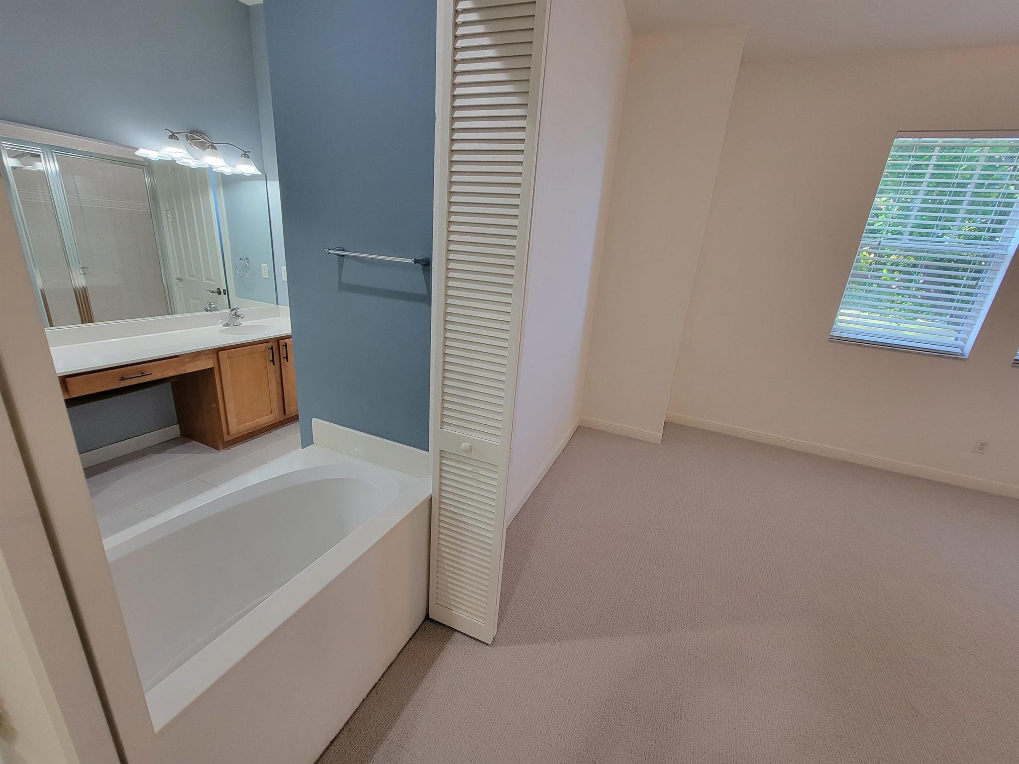 WOW! MUST SEE beautiful lakeside 2300 plus sq ft 3 bedroom / 2 1/2 bath, 2-story, 2-car garage (with overnight parking allowed in your large driveway). Gated community, close drive from entrance. Huge 22 ft ceiling in living room with lots of natural sunlight with tile floors downstairs and carpet upstairs. Unit includes new washer/dryer, newer A/C unit and water heater, and new refinished garage floor. Beautiful views and sunsets from your home and patio. Close to huge pool, clubhouse and fitness center. Shopping, Palm Beach Outlet Mall, restaurants and I-95 access are close by. DON'T MISS THIS ONE.