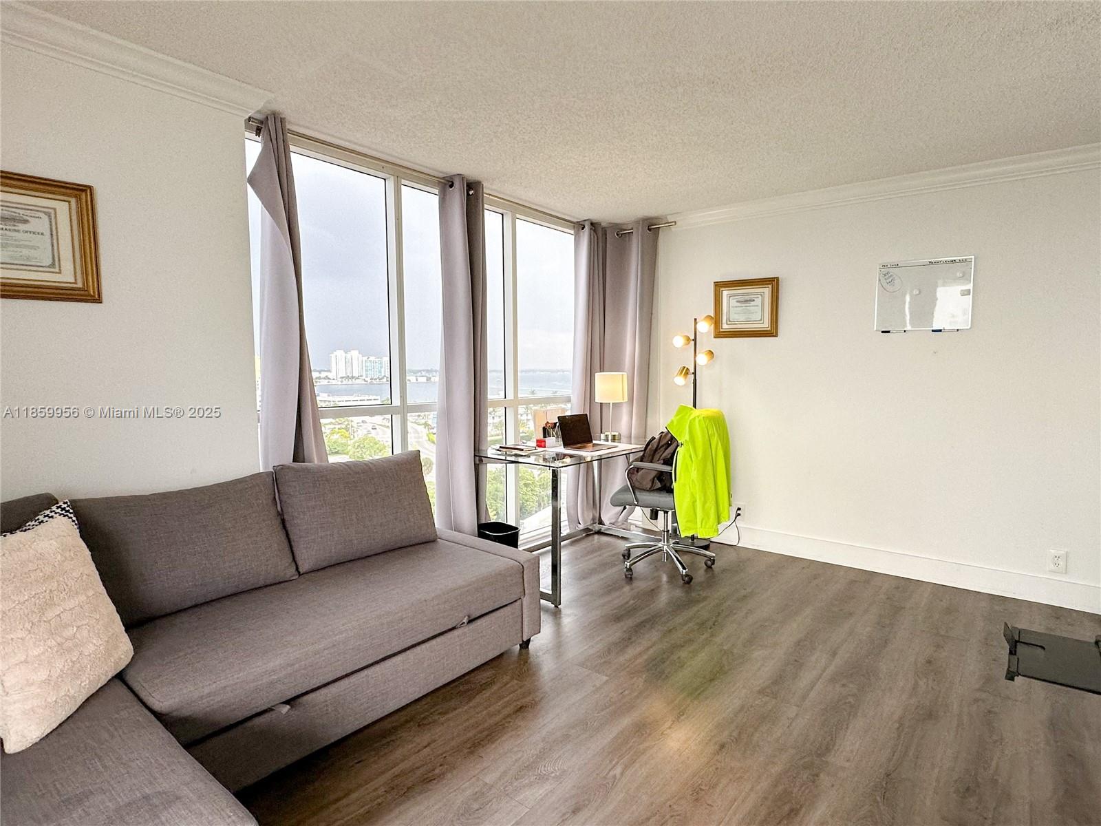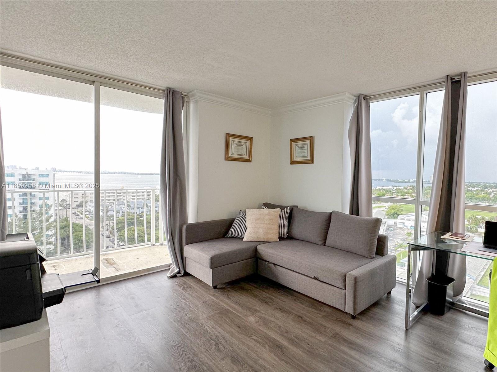 Stunning water views from every room! This spacious corner residence features two oversized balconies and floor-to-ceiling windows that fill the home with natural light, with elegant laminated wood flooring throughout, the unit offers a modern kitchen with granite countertops and stainless steel appliances. The split-bedroom floor plan provides privacy and ample closet space. Enjoy resort-style living with exceptional amenities including an Olympic-size pool, jacuzzi, marina, BBQ area, and 24-hour lobby attendant service. Ideally located just minutes from the beach, with a grocery store, restaurants, and a school right across the street, plus easy access to major expressways.