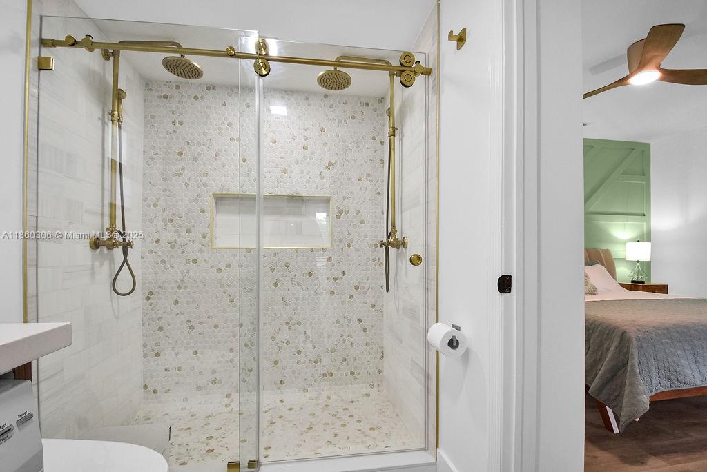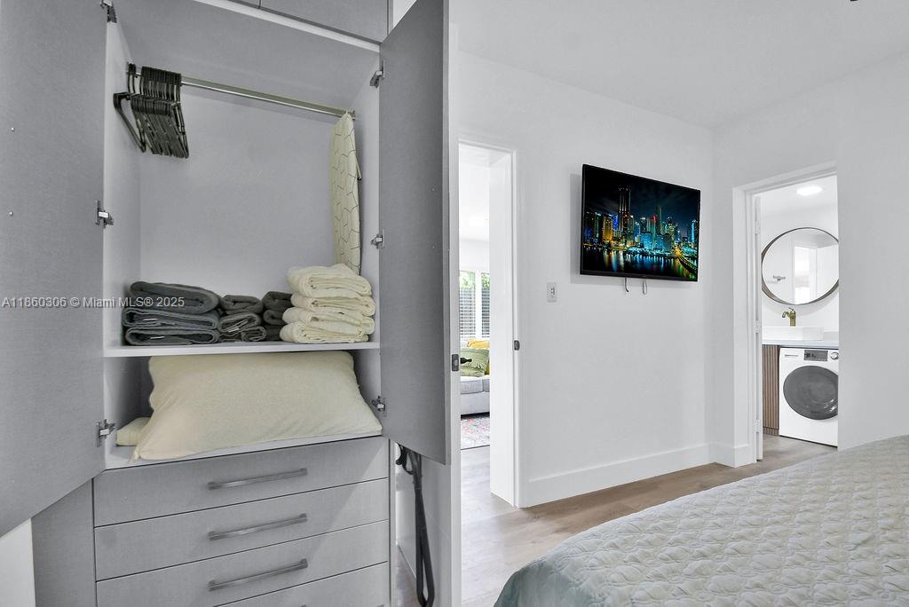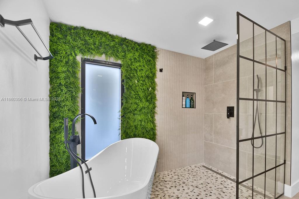 Introducing one of the largest homes in the sought-after Poinsettia Heights neighborhood! This stunning 4-bedroom, 3-bathroom residence has undergone a complete renovation, boasting brand new kitchen and bathrooms, along with a sparkling NEW pool. Enjoy the peace of mind provided by the new AC system and a durable aluminum roof with an impressive lifespan of 50 years. Hurricane impacts windows and doors throughout. Primary bathroom includes a luxurious freestanding bathtub, a separate waterfall shower head, and a sleek floating vanity adorned with contemporary finishes. A unique feature of this home is its full 1-bedroom, 1-bathroom private suite with a separate entrance and its own kitchen, perfect for guests or extended family members. Will be fully furnished upon lease