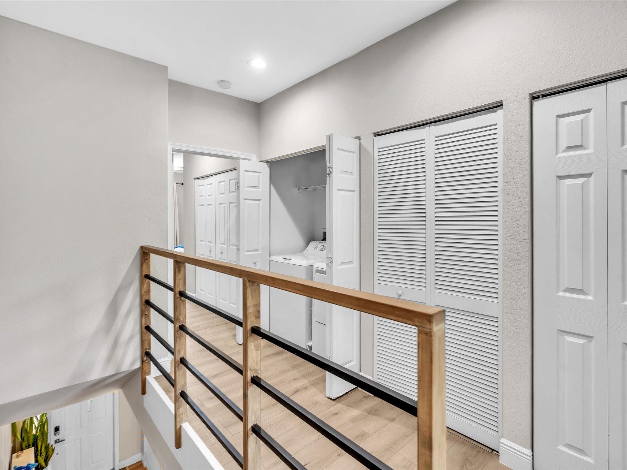 Substantially updated with style and quality, this town home is move in ready! Enjoy the serene back patio with just green and flowers to see. With its open concept, this home feels open and airy. Almost all appliances, flooring, and the kitchen is updated and newer. Ample parking is featured with both a garage, driveway, and guest parking. Full size washer and dryer is located upstairs for ease of doing laundry. The upstairs features the bedrooms split at opposite ends of the hall so everyone gets quiet and privacy. Plenty of closet space and abundant storage here! Great location with easy access to major roads, just off Oakland Park Blvd. The gated complex offers security, and a heated pool. HOA: 700 credit score and interview for approval. First, and one month security to move in!