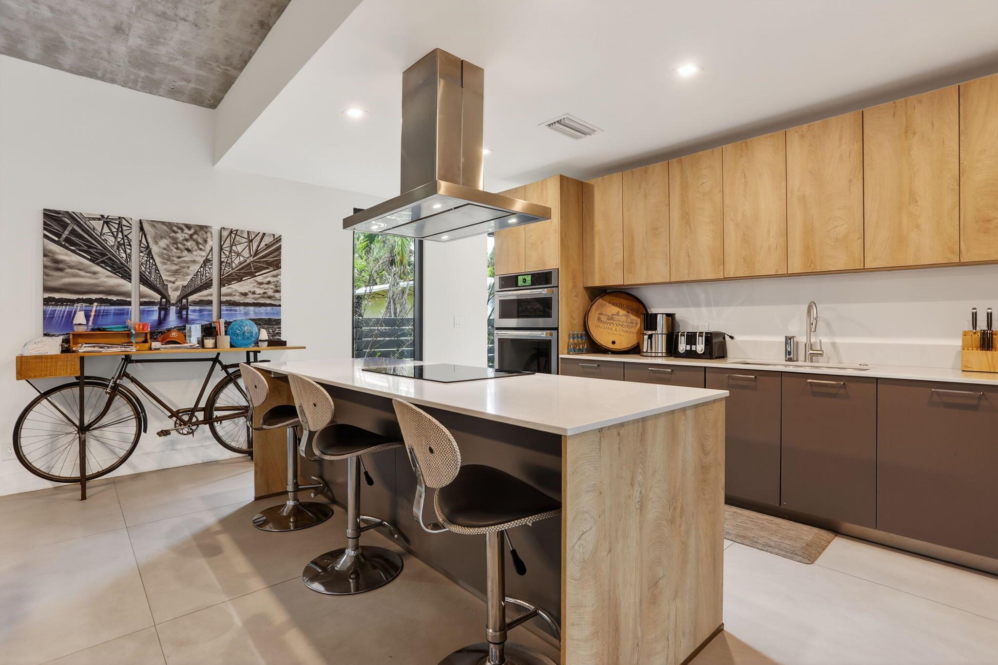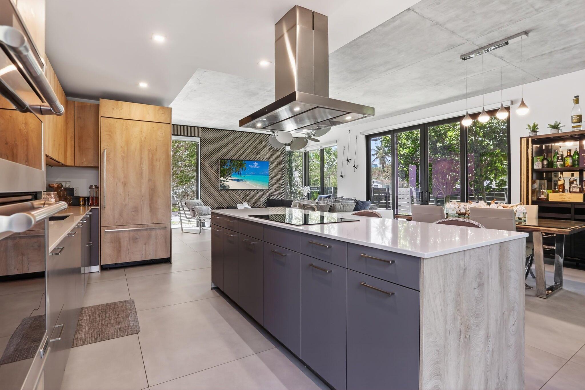 Discover the perfect blend of modern luxury, privacy, and convenience in this stunning townhouse with 2,239 sq. ft. of open-concept living space. Designed with sophistication and lifestyle in mind, this residence is ideal for those seeking a sleek, contemporary home in one of Fort Lauderdale's most desirable neighborhoods. Step inside through a custom-built stained-glass front door and be greeted by soaring floor-to-ceiling impact glass that floods the home with natural light. The spacious open floor plan is perfect for entertaining, whether you're hosting friends in your private fenced-in outdoor oasis with low-maintenance artificial grass, or enjoying a quiet evening at home. The gourmet kitchen is outfitted with top-of-the-line built-in appliances and a stylish modern design,