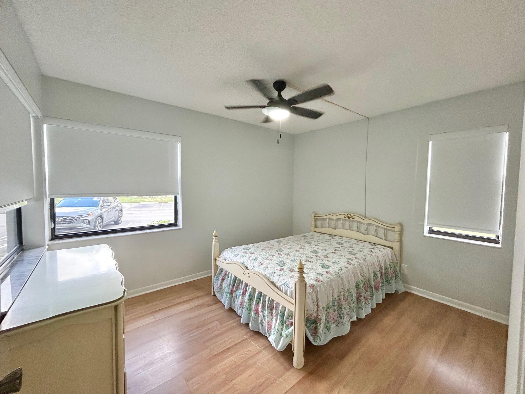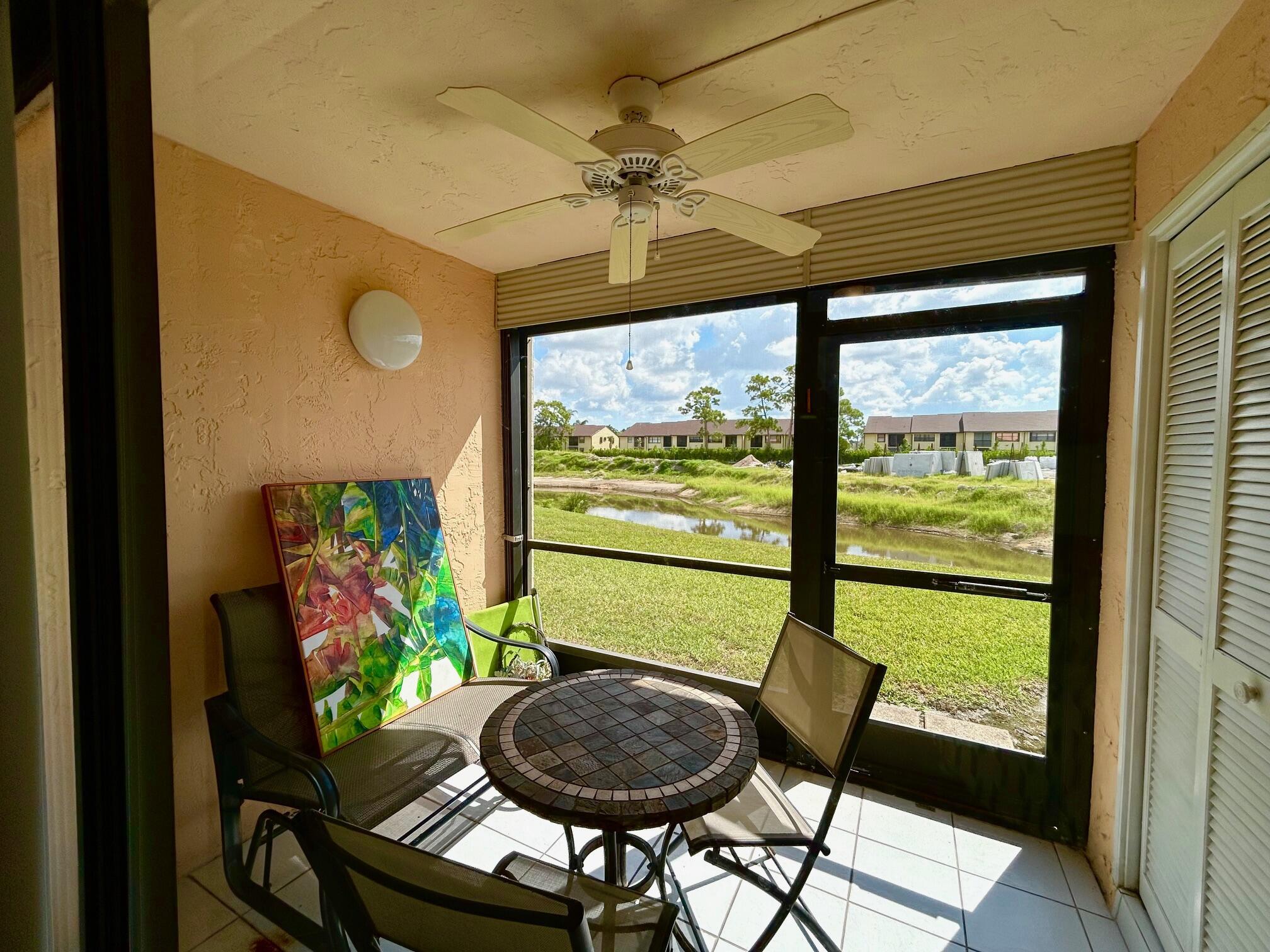 2 bedroom 2 bath 1st floor corner condo. Parking right up front. Large eat in kitchen with pass through to dining room. 3rd room with closet can be used as office/den. Master bedroom features a walk in closet and ensuite bathroom with walk in shower. enclosed back porch with water view and laundry closet. Community offers large clubhouse, lobby, theater with entertainment, billiards, bocce and shuffleboard, library, tennis, 2 heated swimming pools, hot tub, whirlpool and sauna. Bus service from the clubhouse to shopping, medical and excursions. Lake Worth Beach 10 miles away. Close to turnpike, shopping and medical.