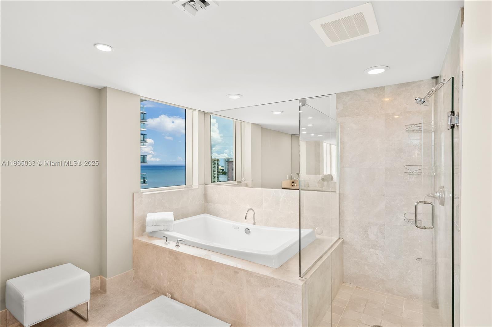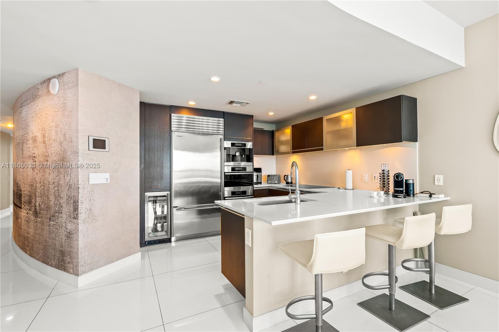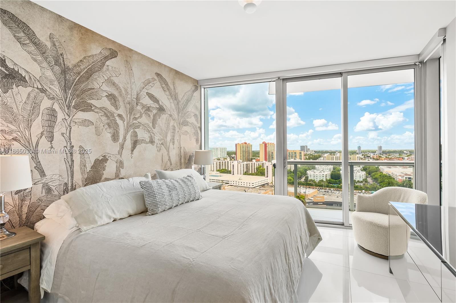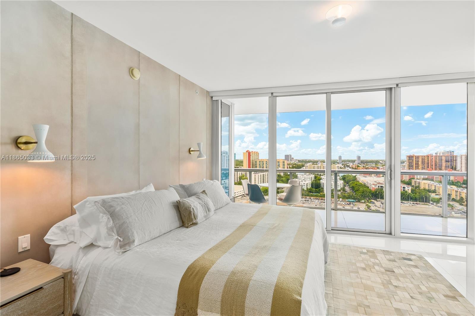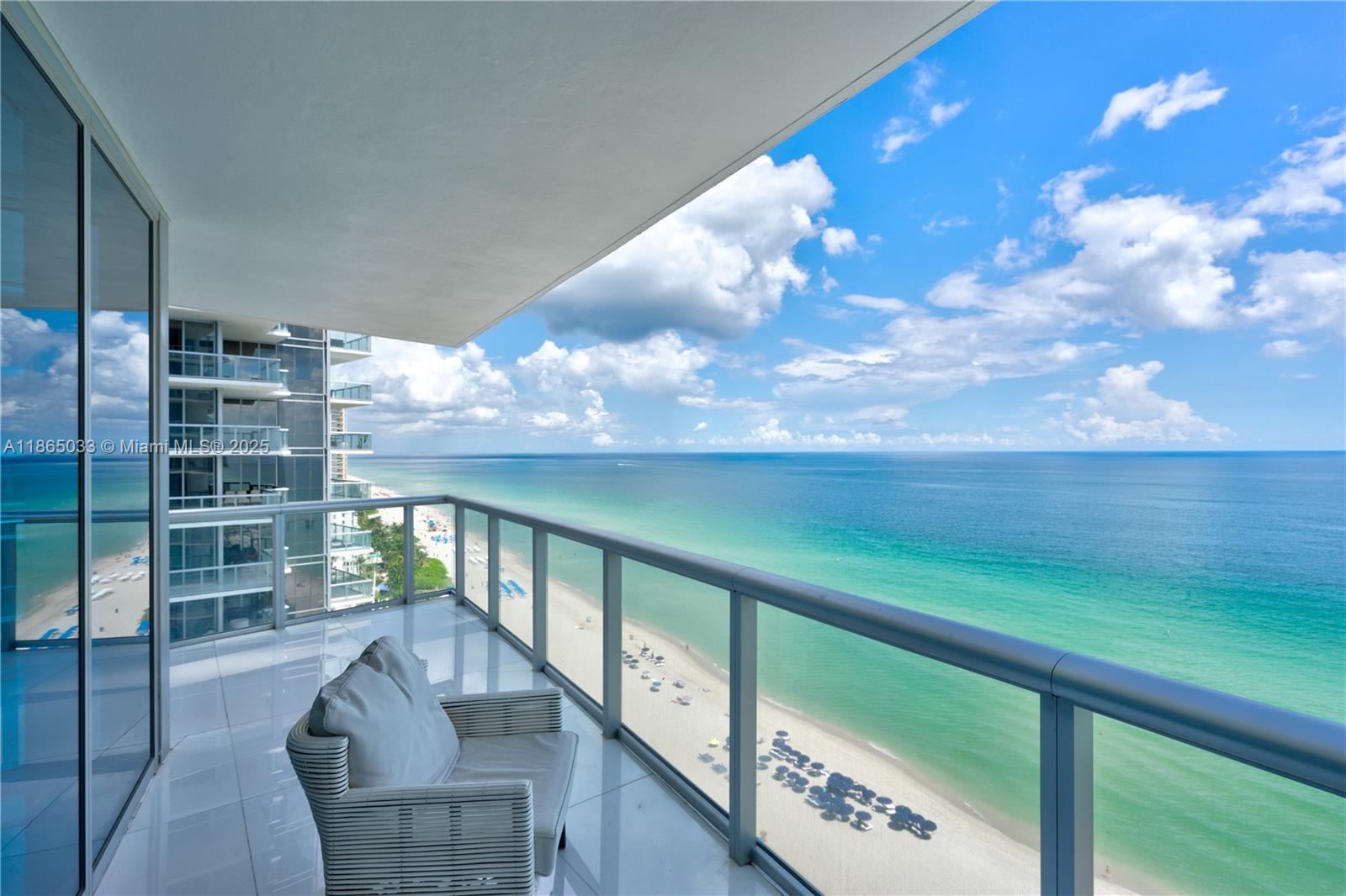 Spectacular furnished corner residence, 3 beds + 3.5 baths with private elevator opening to a private foyer. Enjoy breathtaking, unobstructed ocean views from this residence in the sky. Beautifully decorated with wallpaper, Artefacto furnishings and other luxury brands, electric shades, European appliances, quartz kitchen countertops, Snaidero cabinetry, custom millwork, closets, and window treatments. A truly unique high-end home with elegant design and finishes.