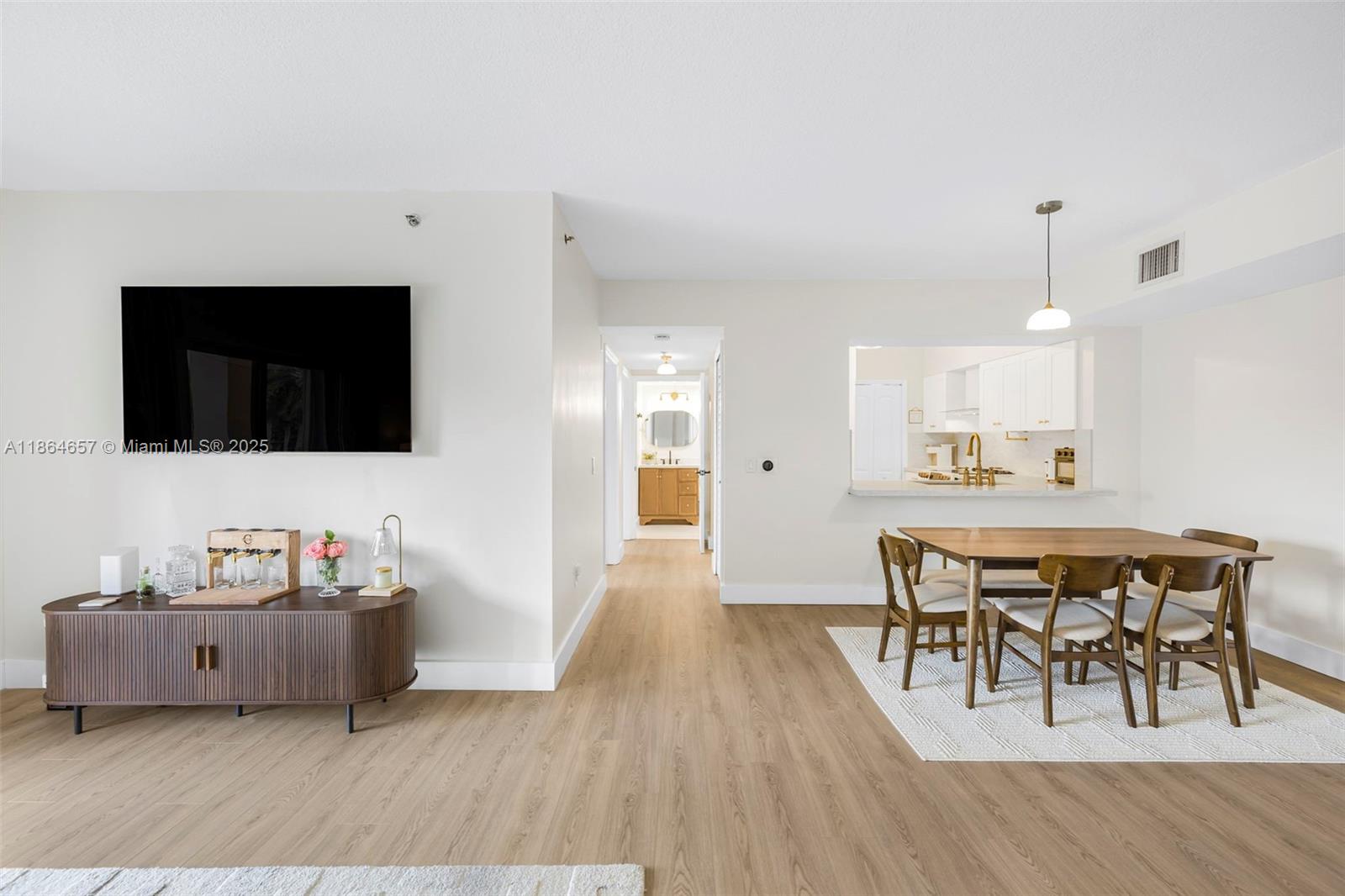 Enjoy this stunningly renovated 3BED/2BA unit with all brand new appliances, located in the heart ofFontainebleau. As soon as you enter, you're welcomed with a floor to ceiling balcony window to your spacious livingroom. This is an ideal split floor plan with a large primary bedroom with walk in closet, bathroom with elegant tiles,new hardware fixtures and vanity. The separate dining area makes room for a wonderful gathering where a homebegins in the kitchen. The modern kitchen opens up with wide countertop made with space for additional seatingswith barstools. Maximum convenience with full size washer & dryer in the unit and 2 parking spaces. Building has24/7 guard gate, pool, fitness room, and clubhouse available for private parties. Walking distance to Walmart, LAFitness & more!