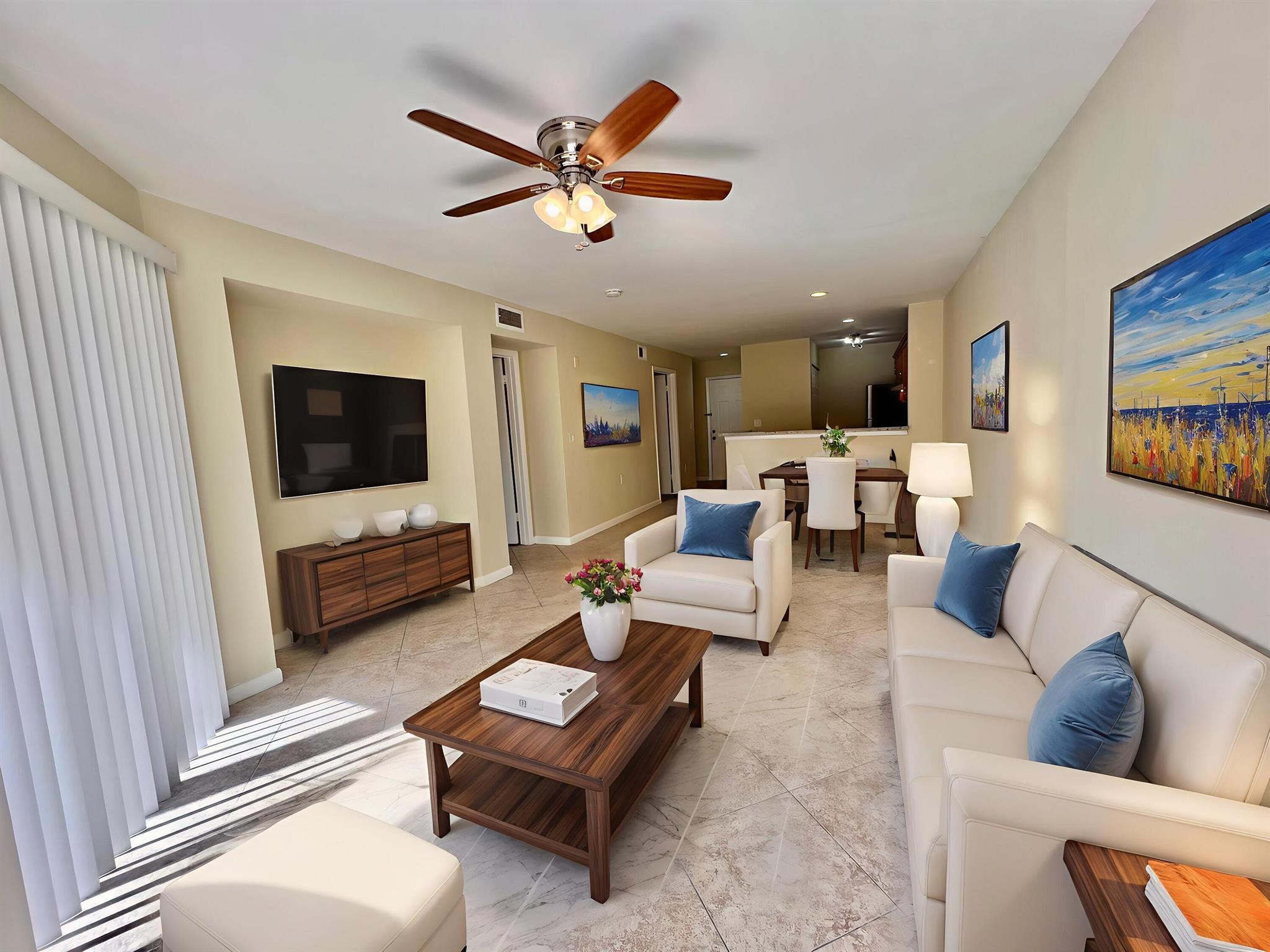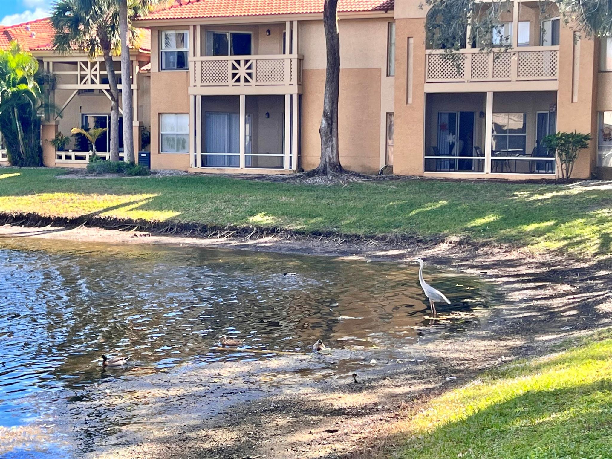 Spacious 2 bedroom 2 bath- First floor Condo-Amazing Waterview from living area and Master Bedroom- Gated Community-Building conveniently located to the residents gate- Granite countertops-Stainless Steel appliances- Tile flooring throughout- Walk In Closets -Laundry IN-Outside Storage comes with unit. Pet friendly-Water included in the rent- CS 620 + required by Association.