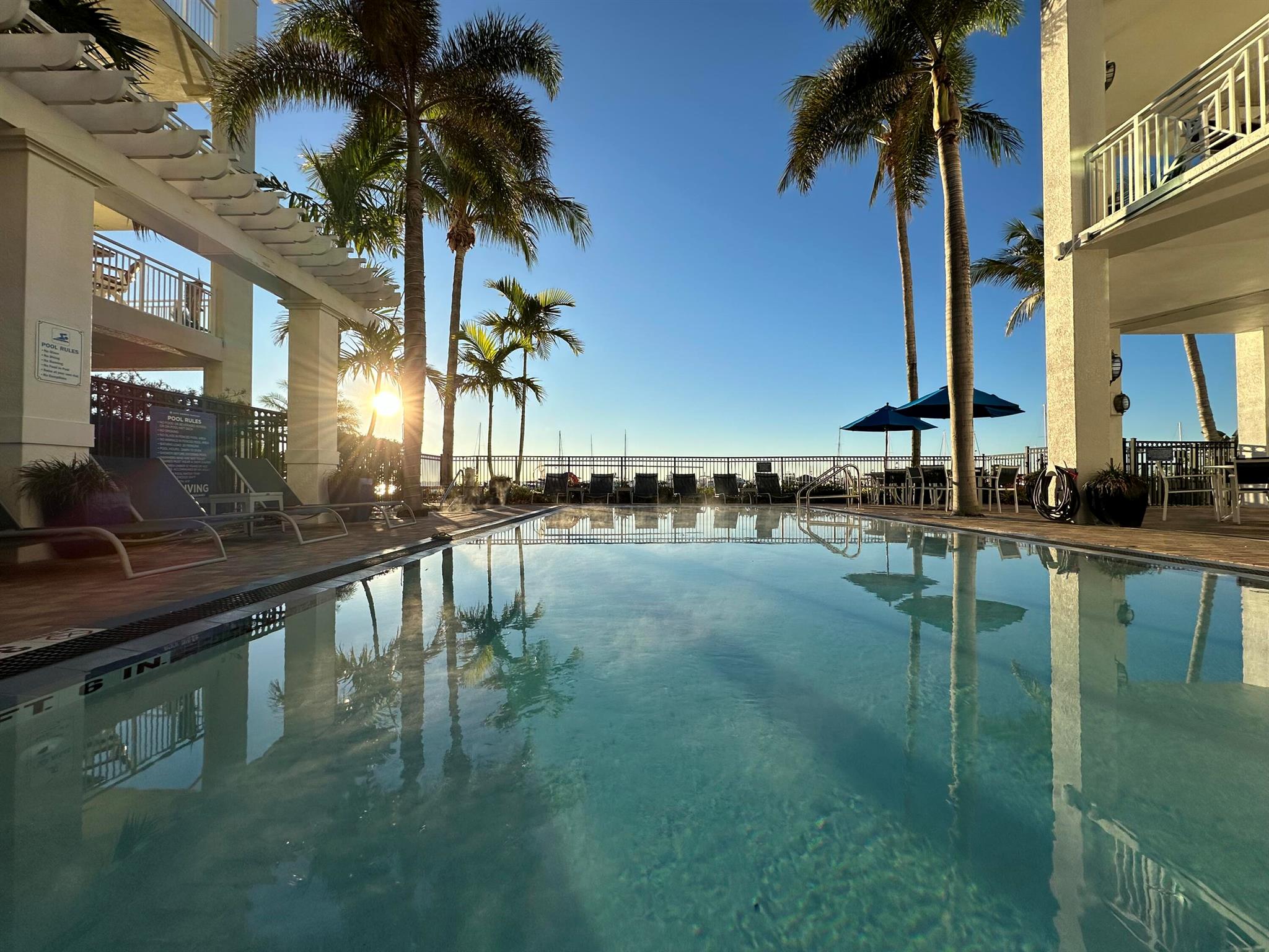 Experience coastal living at its finest in this turnkey 3-bedroom, 2-bath corner condo. This beautifully updated unit features a spacious wrap-around balcony with stunning sunrise and sunset views. Inside, you'll find tasteful upgrades including custom built-ins in all closets, a large walk-in master closet, granite countertops, stainless steel appliances, impact windows, fresh paint, and updated light fixtures throughout. The secure, gated building includes covered parking and elevator access. Enjoy top-tier amenities such as two resort-style pools, a hot tub, clubhouse with a fitness center, sauna, steam room, billiards, poolside cafe and on-site dining at TideHouse and Latitude 26. Boat slips are available for vessels up to 100 feet.